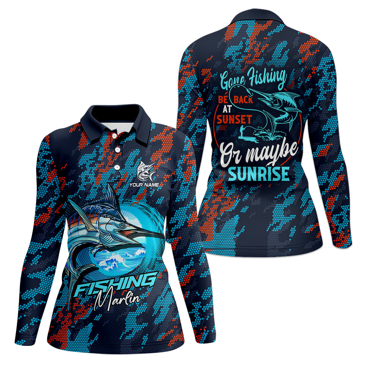 Marlin Fishing UPF Shirts, Gone Fishing Be Back At Sunset Or Maybe Sunrise Shirts, Fishing Shirts For Women