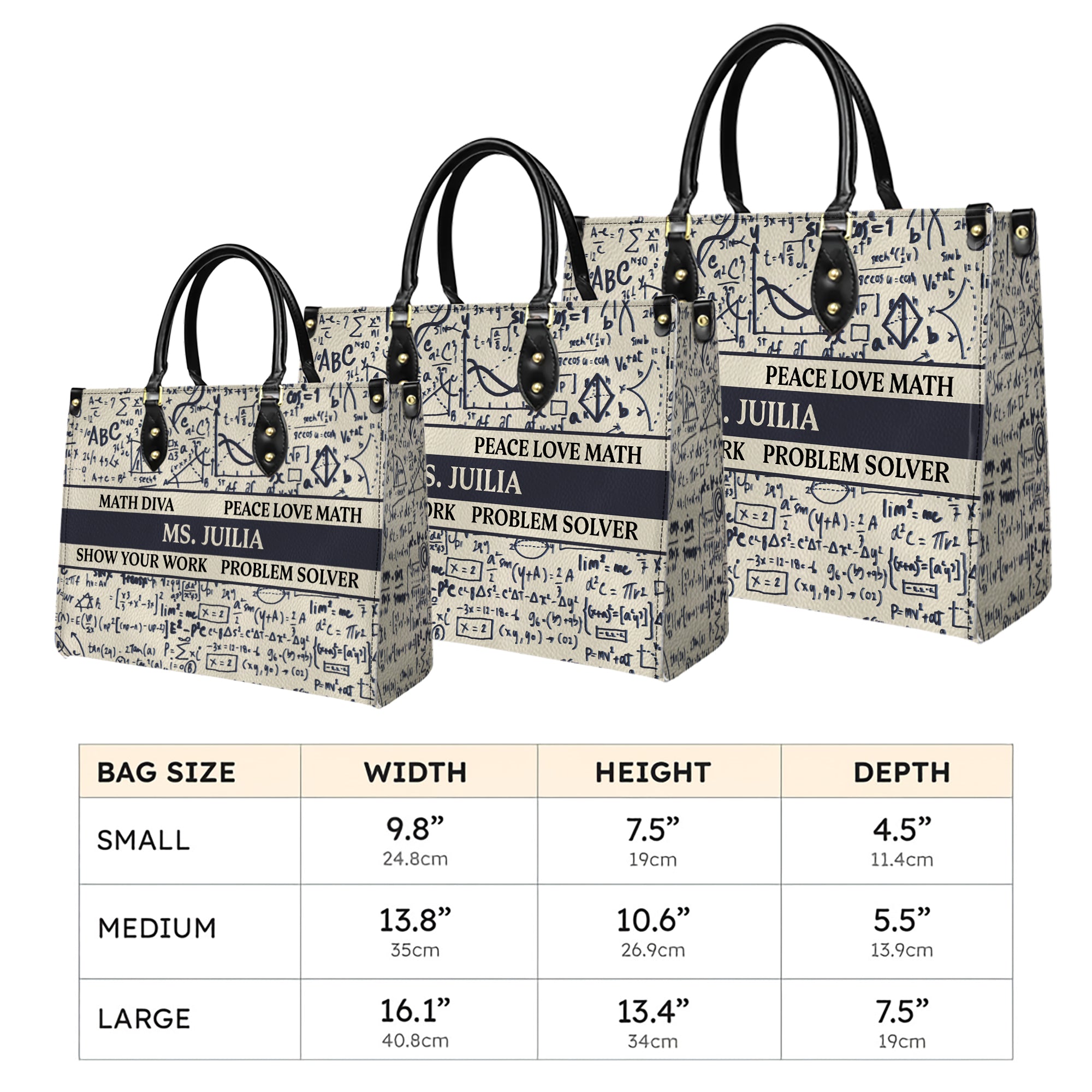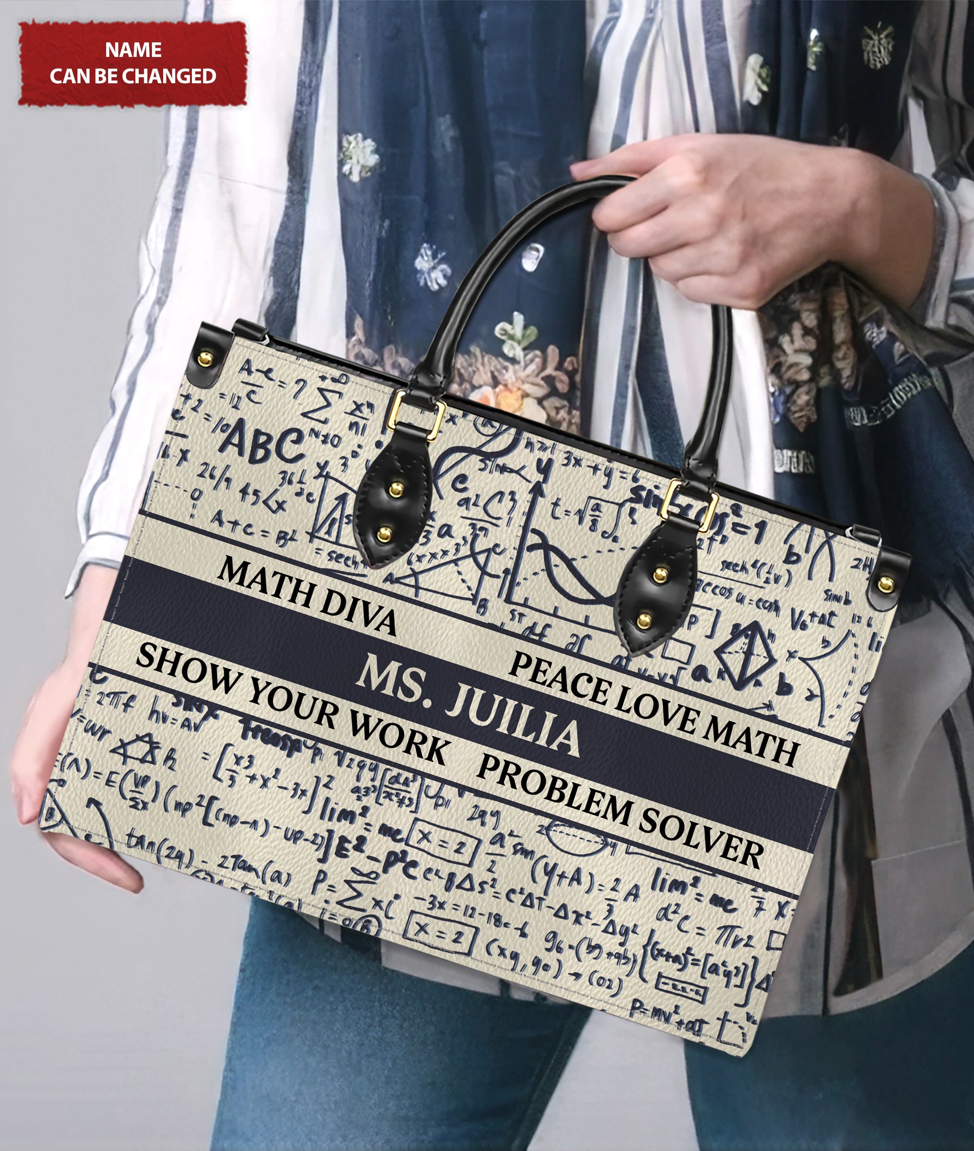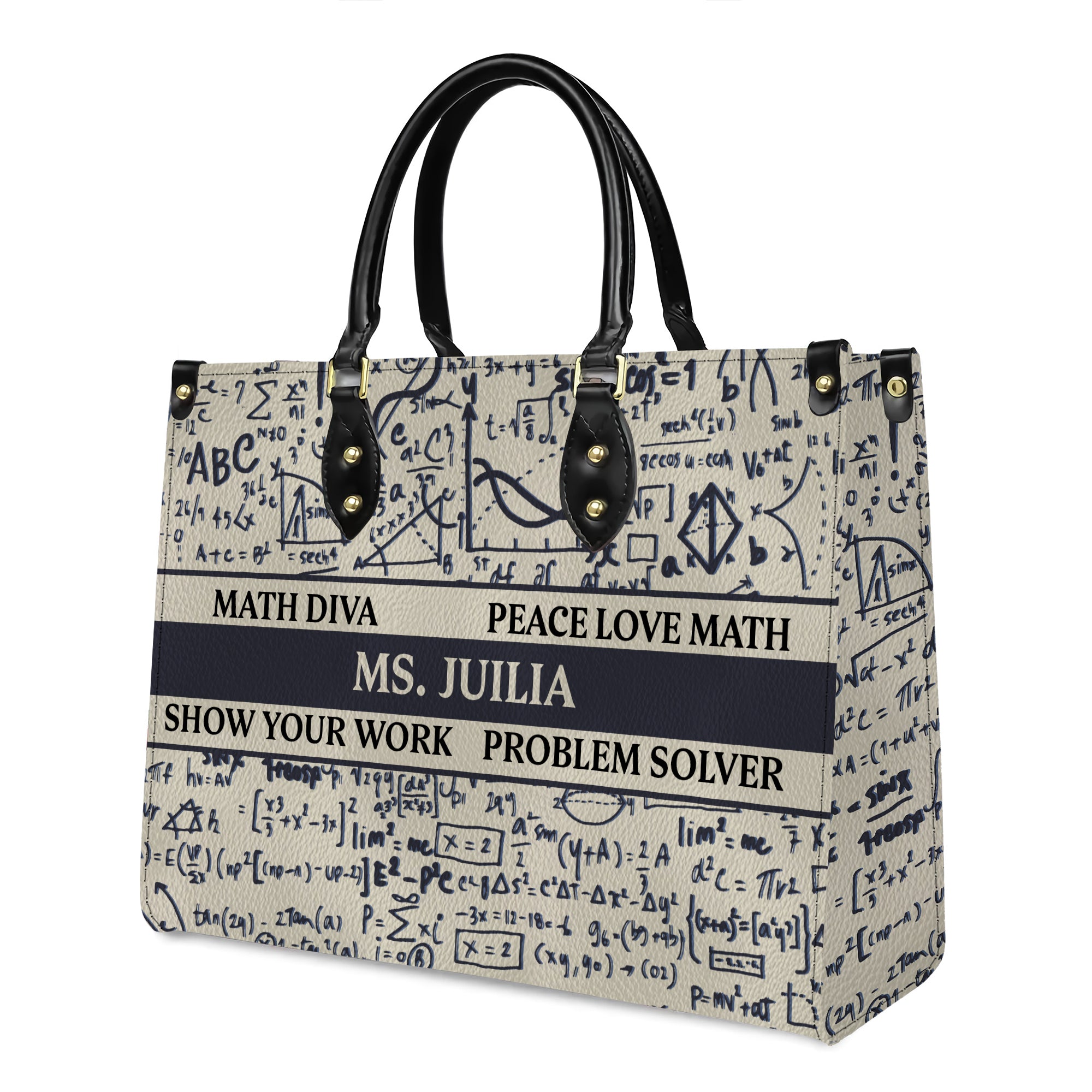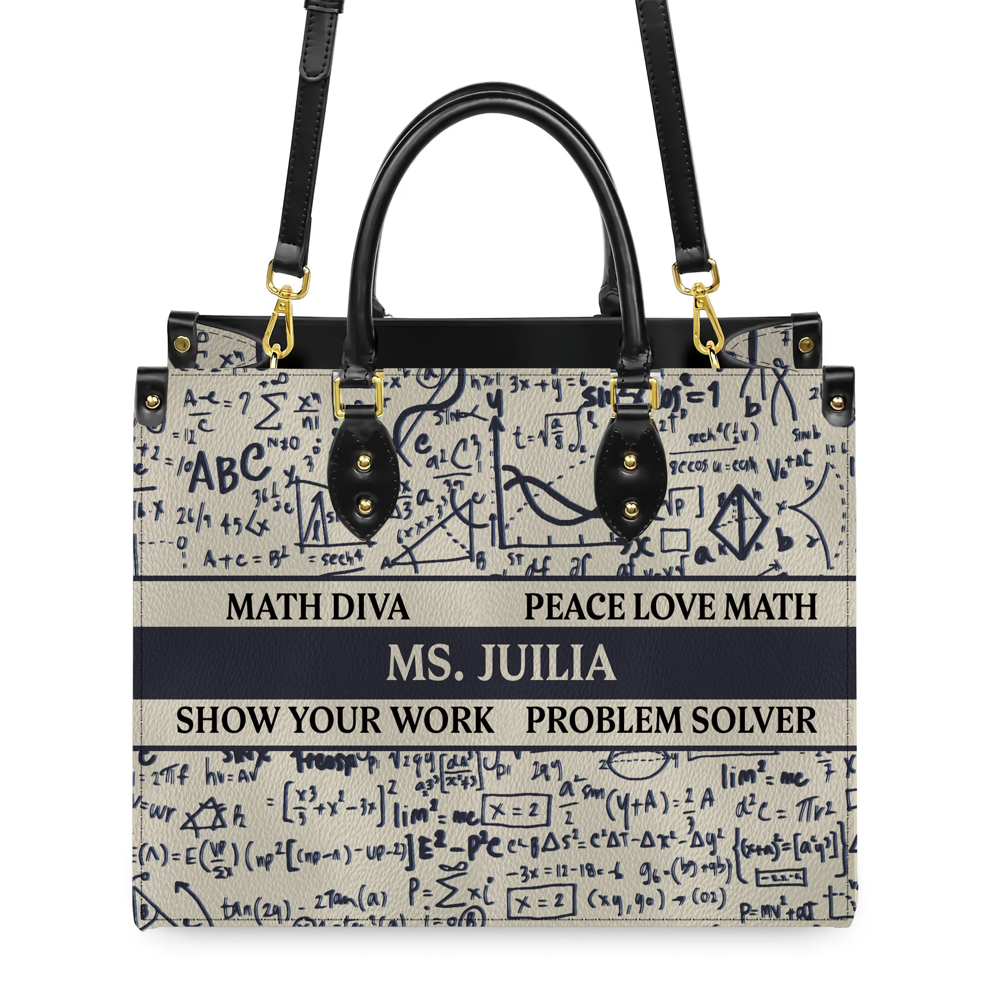 Math Diva Personalized Leather Teacher Bag, Math Teacher Appreciation Gift