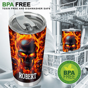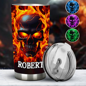 Melted Skull On Fire Custom Stainless Steel Tumblers, Halloween Gift Idea, 20oz 30oz Insulated Tumbler