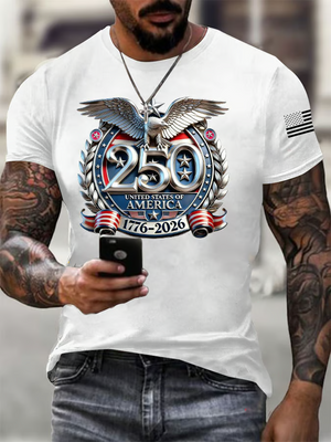 Men's Casual USA 250th Anniversary Printed Short-Sleeve T-Shirt, USA Flag Unisex Shirt, Patriotic Gift