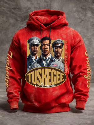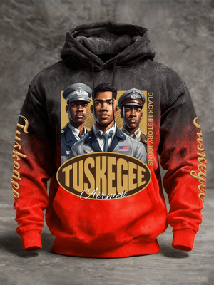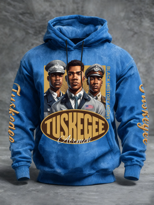 Men's Western Retro African American Air Force Print Hooded Sweatshirt, Black History Month Gift