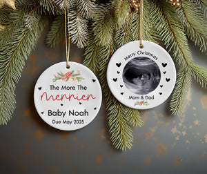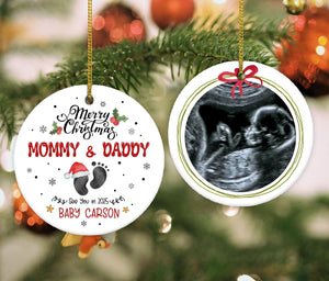 Merry Christmas Mommy and Daddy Ceramic Christmas Ornament, Pregnancy Announcement Ornament, Baby Announcement