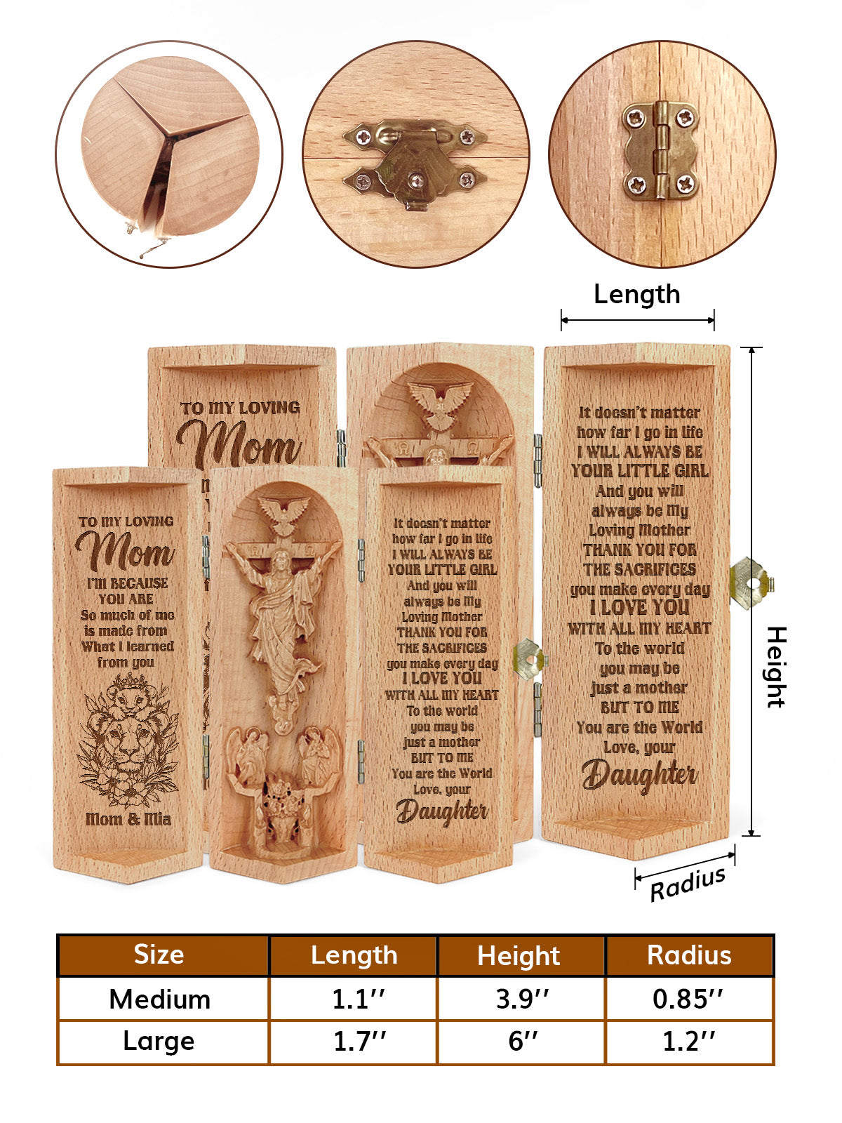 Mom And Daughter I Am Because You Are, Personalized Openable Wooden Cylinder Sculpture of Jesus Christ, Christ Decor