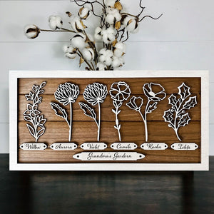 Personalized Grandma's Garden Birth Month Flower Frame Wood Sign, Gifts For Mother's Day, Present For Grandma With Grandchildren Names