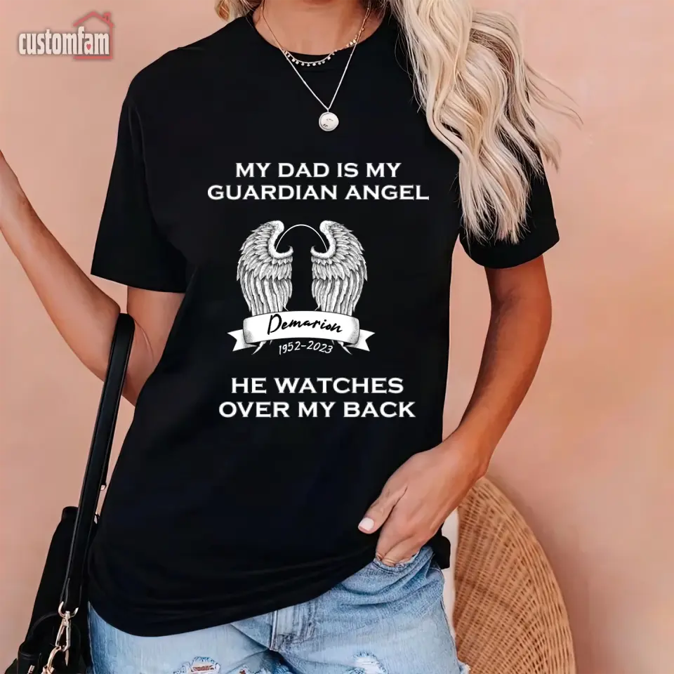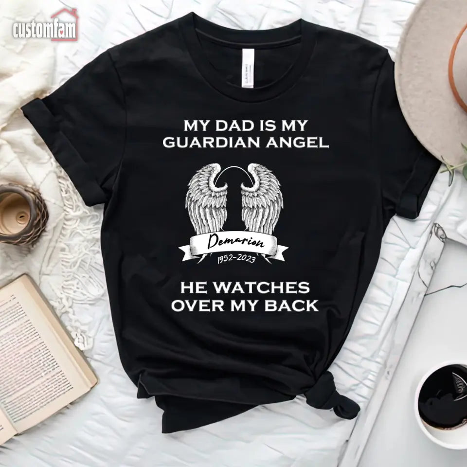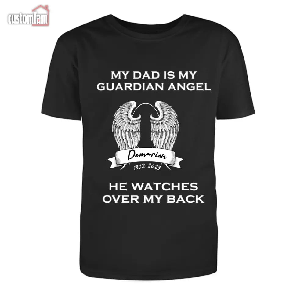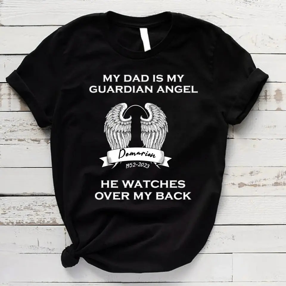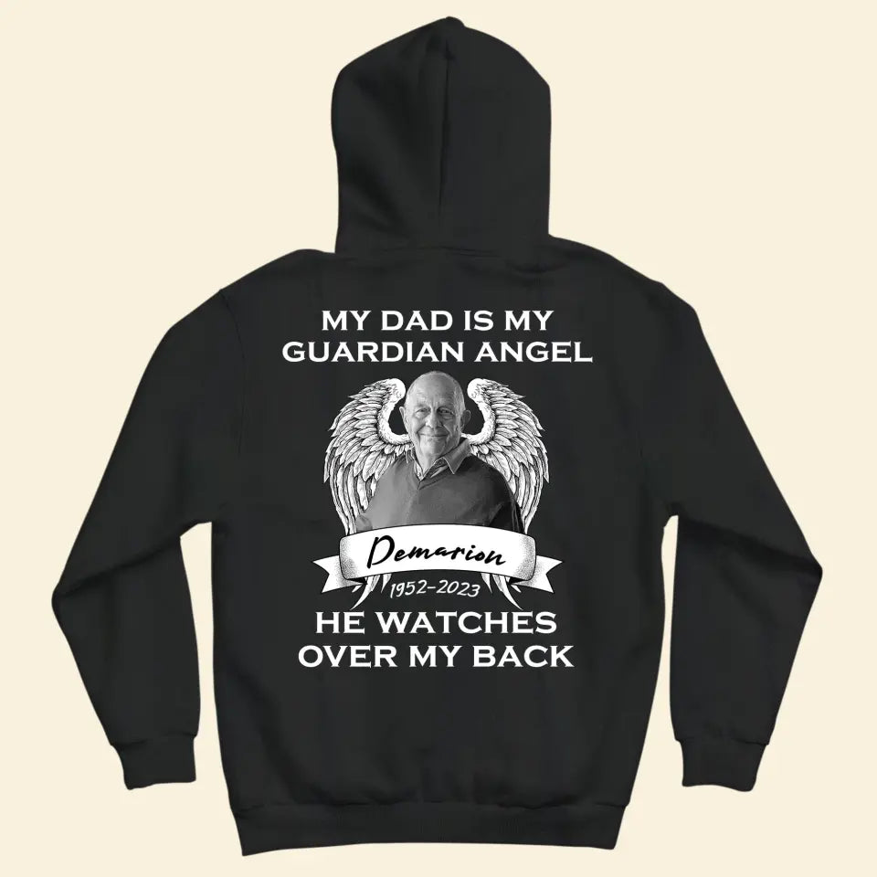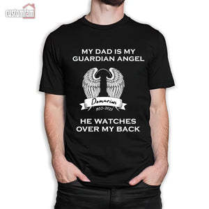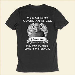 My Dad Is My Guardian Angel Personalized Photo Back Printed Shirt, Memories In Heaven, Gifts For Dad, Father's Day Gift