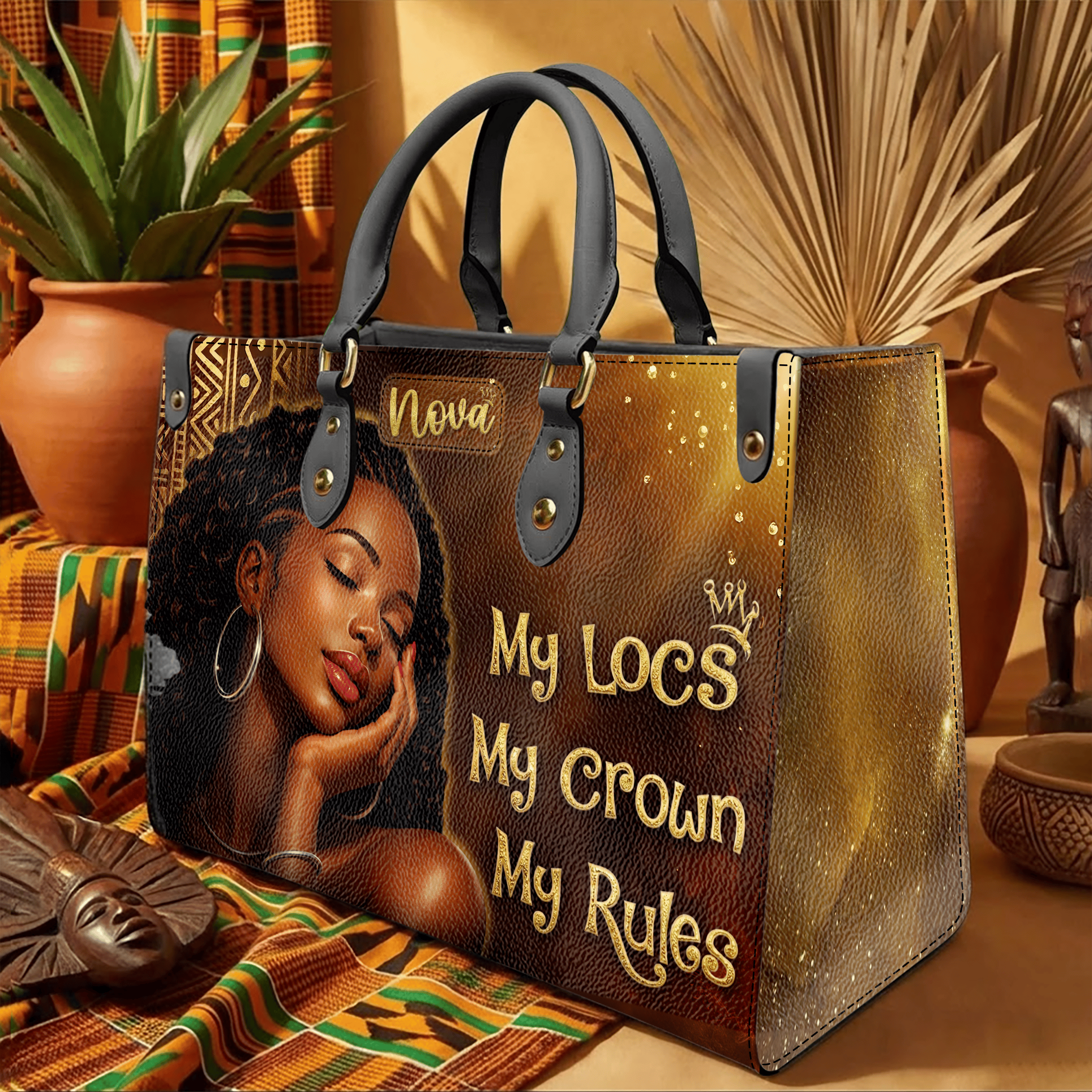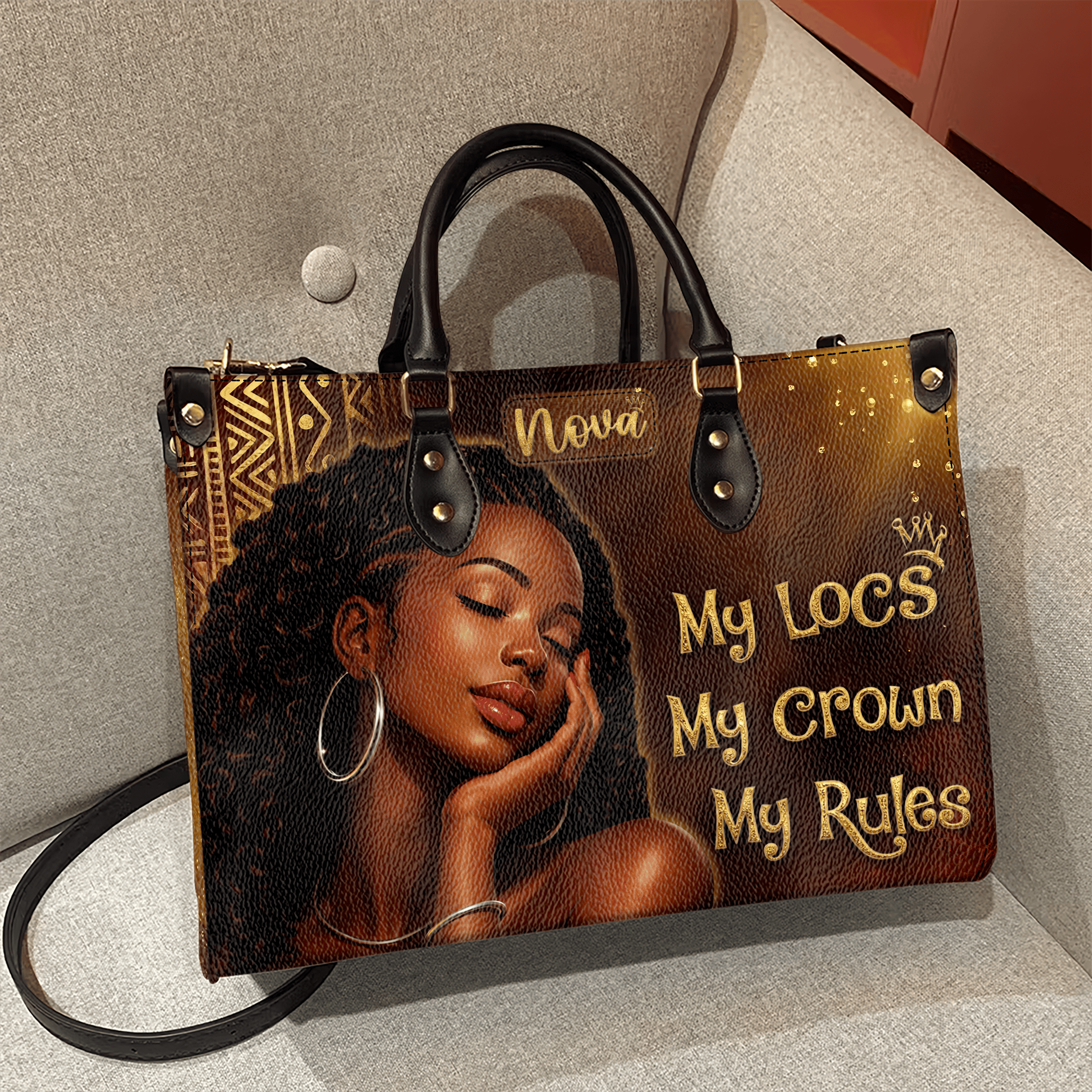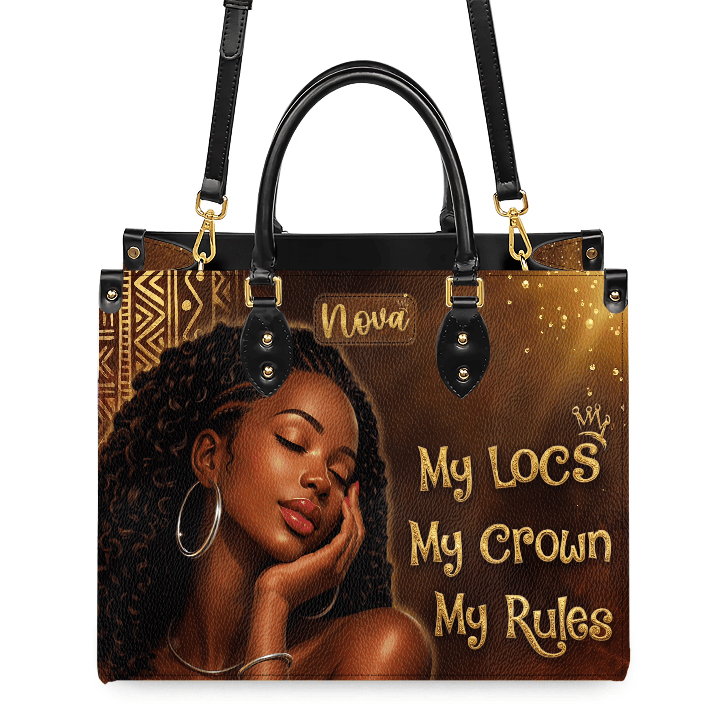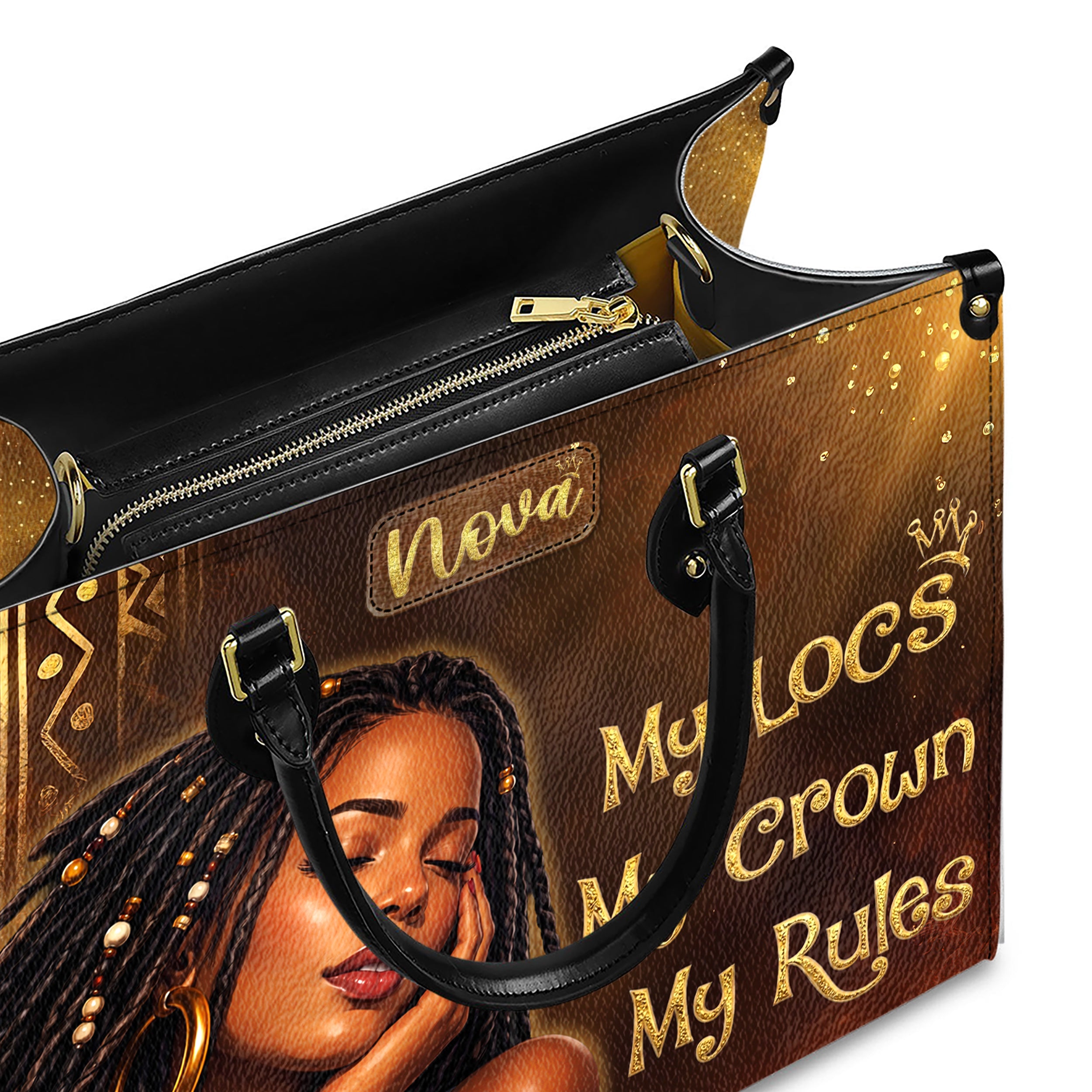 My Locs My Crown My Rules Handbags With Matching Wallets, Black History Month Gifts, Purse And Wallet Set