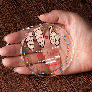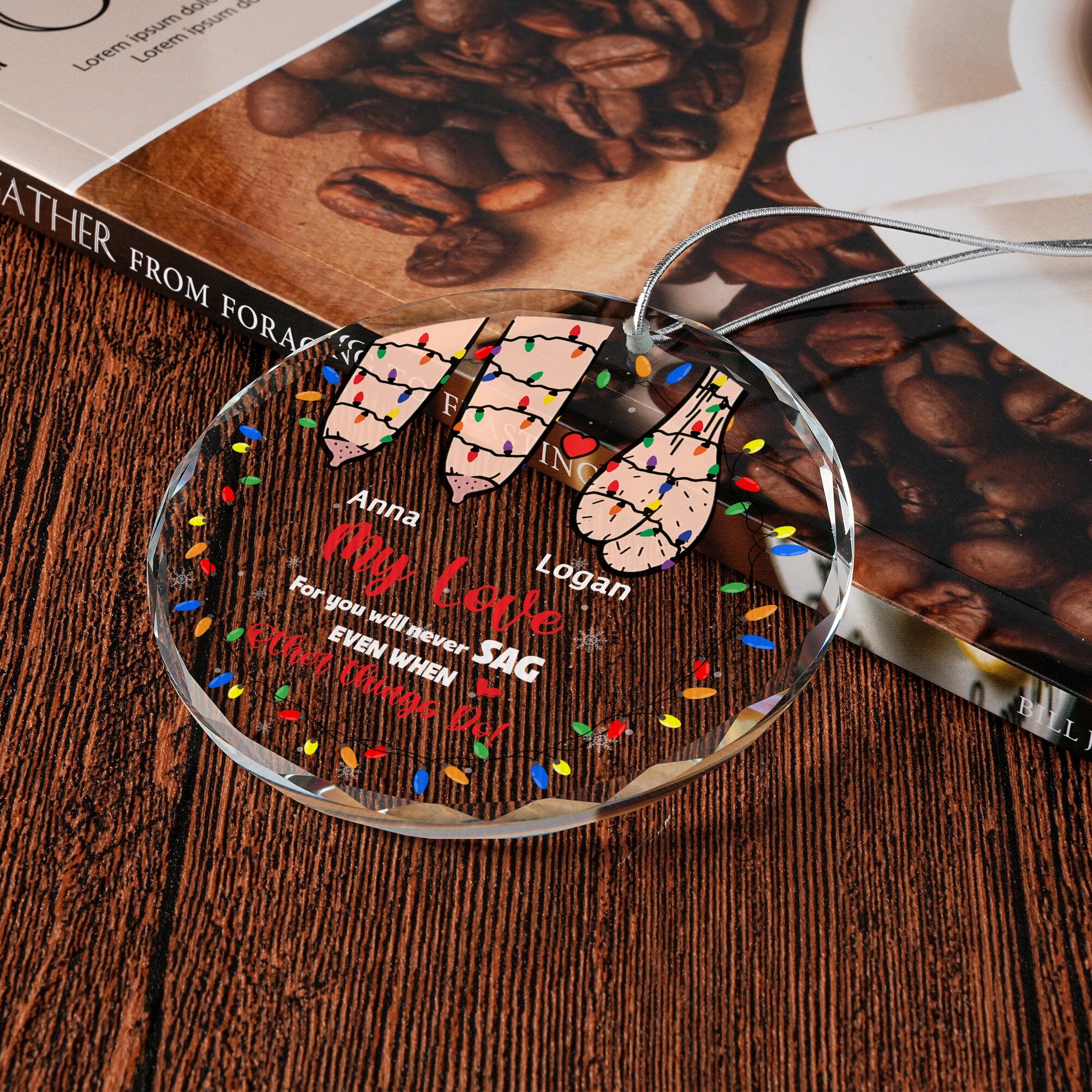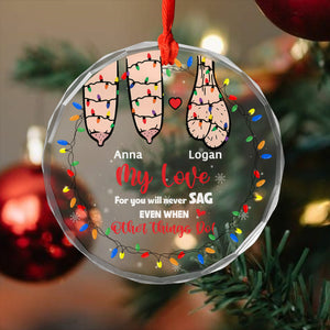 My Love For You Will Never Sag Even When Other Things Do Personalized Glass Christmas Ornament, Gift For Couple