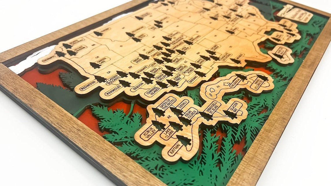 With our custom engraved badge, your wood map becomes a one-of-a-kind storyteller - marking your family name and the beginning of countless outdoor journeys through America's most beautiful parks.