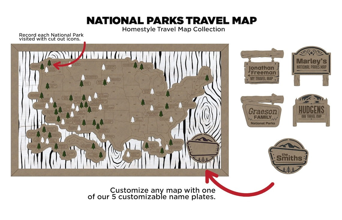 With our custom engraved badge, your wood map becomes a one-of-a-kind storyteller - marking your family name and the beginning of countless outdoor journeys through America's most beautiful parks.