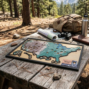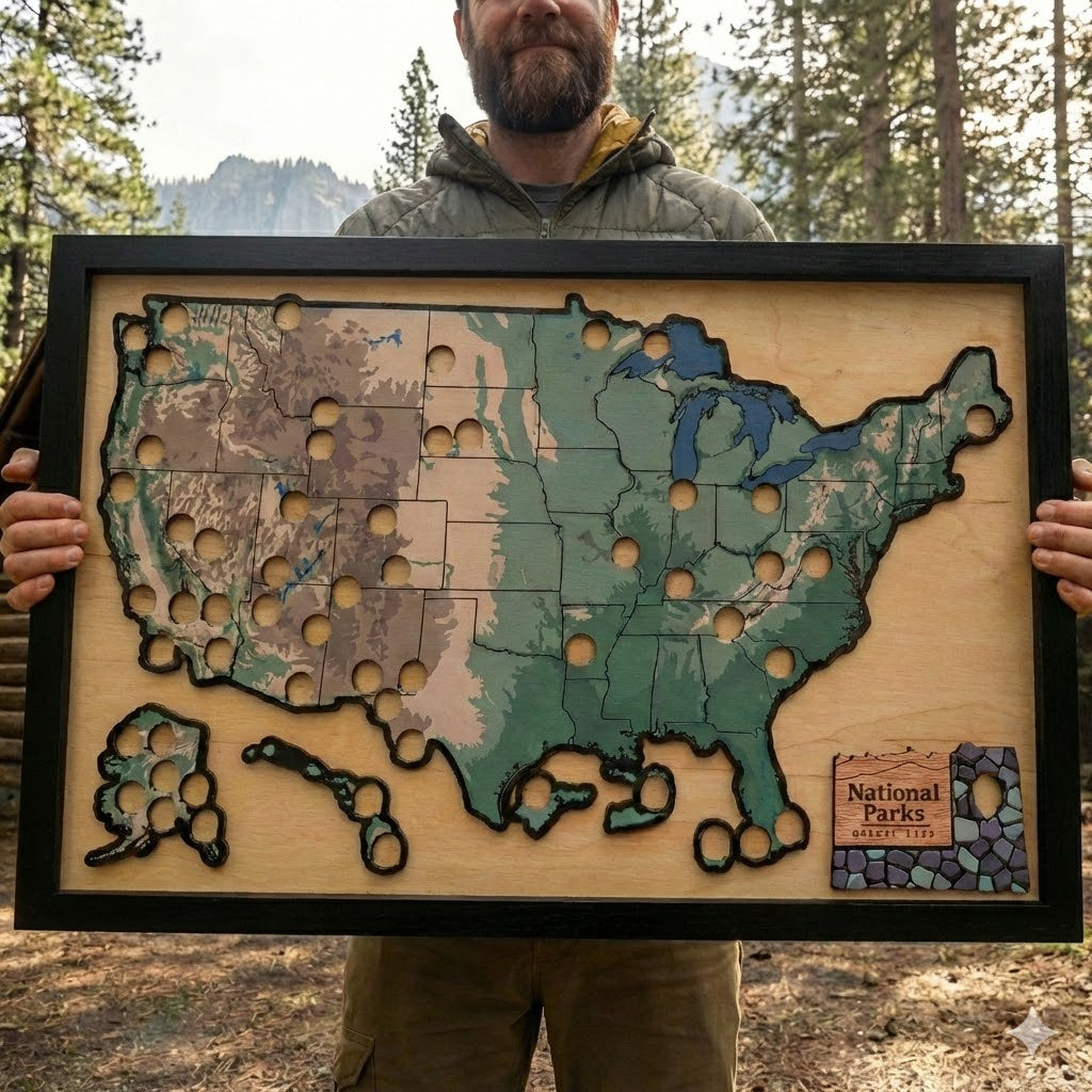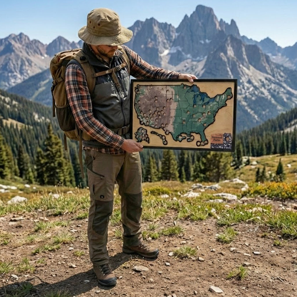 With our custom engraved badge, your wood map becomes a one-of-a-kind storyteller - marking your family name and the beginning of countless outdoor journeys through America's most beautiful parks.