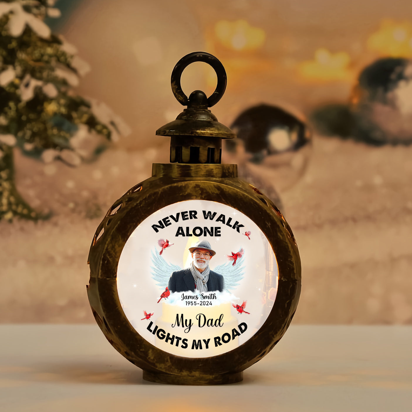 Never Walk Alone Custom Photo Memorial Christmas Lantern Ornament, Sympathy Gift