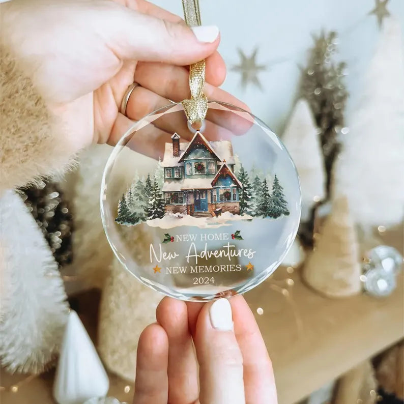 New Home New Adventures New Memories Christmas Glass Ornament, Gift For New House