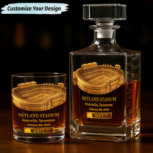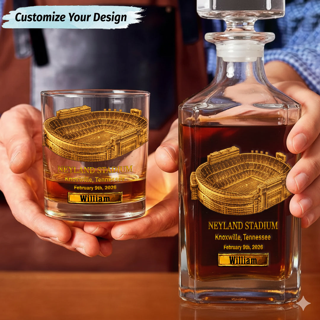 Neyland Stadium Whiskey Decanter Set, Custom Football Stadium Whiskey Glasses, Luxury Whiskey Glass