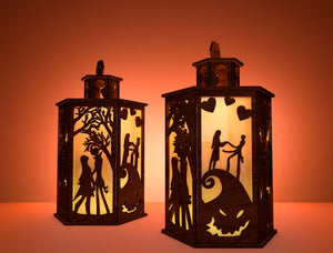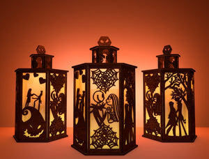 Illuminate your space with a spine-chilling ambiance using this Horror Movie Icon Lantern. Perfect for Halloween or horror-themed decor, this lantern features intricate laser-cut designs of some of the most iconic horror movie characters.