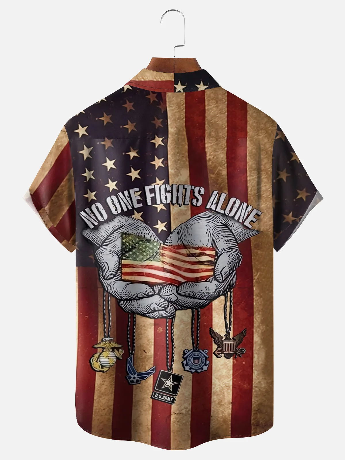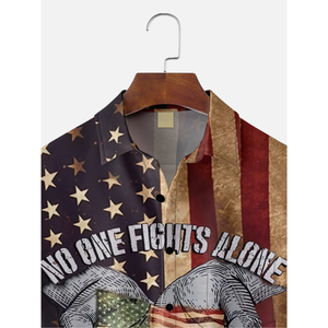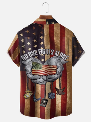 No One Fights Alone Patriotic American Flags Hawaiian Golf Shirt, 250th Anniversary Tropical Vibe Men's Golf Shirt