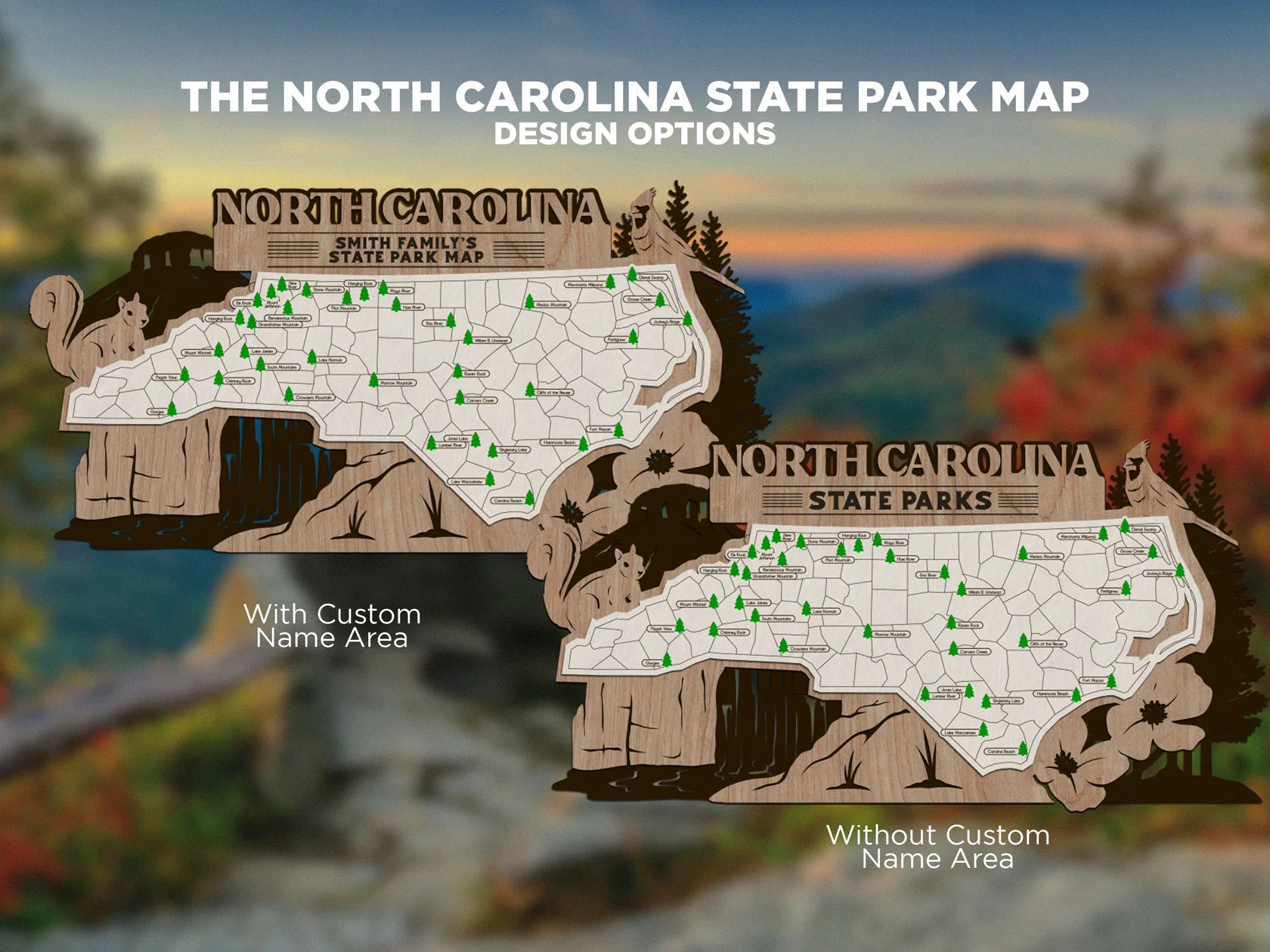 Embark on a journey through the beauty of America's state parks with the North Carolina State Park Explorer Map. This handcrafted map is your canvas to showcase the diverse landscapes and adventures you have experienced. With a captivating outdoor theme background featuring everything your state has to offer, each map can be customized by adding a family name, creating a unique reflection of your outdoor exploration. This customization makes it an ideal gift or cherished family keepsake.
