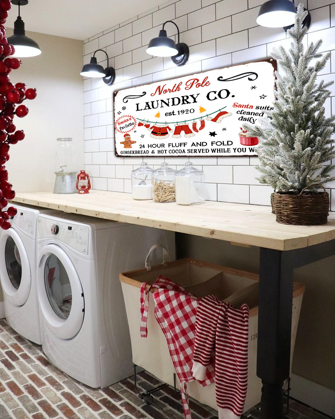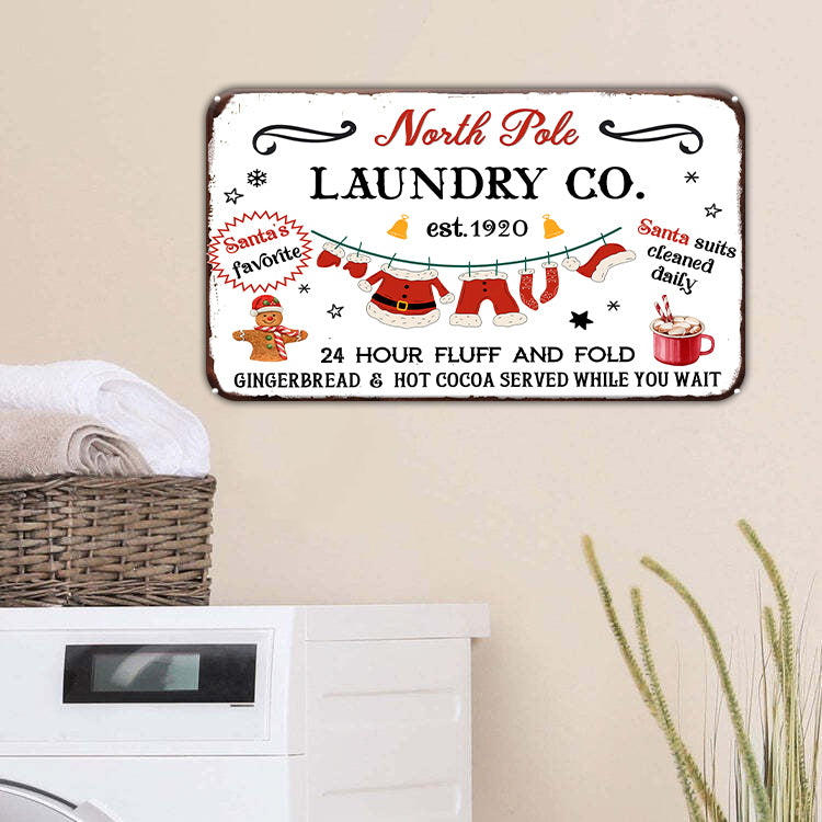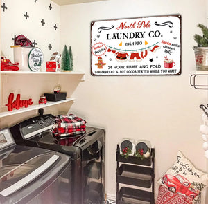 North Pole Laundry Co Christmas Metal Tin Sign, Laundry Room Decor
