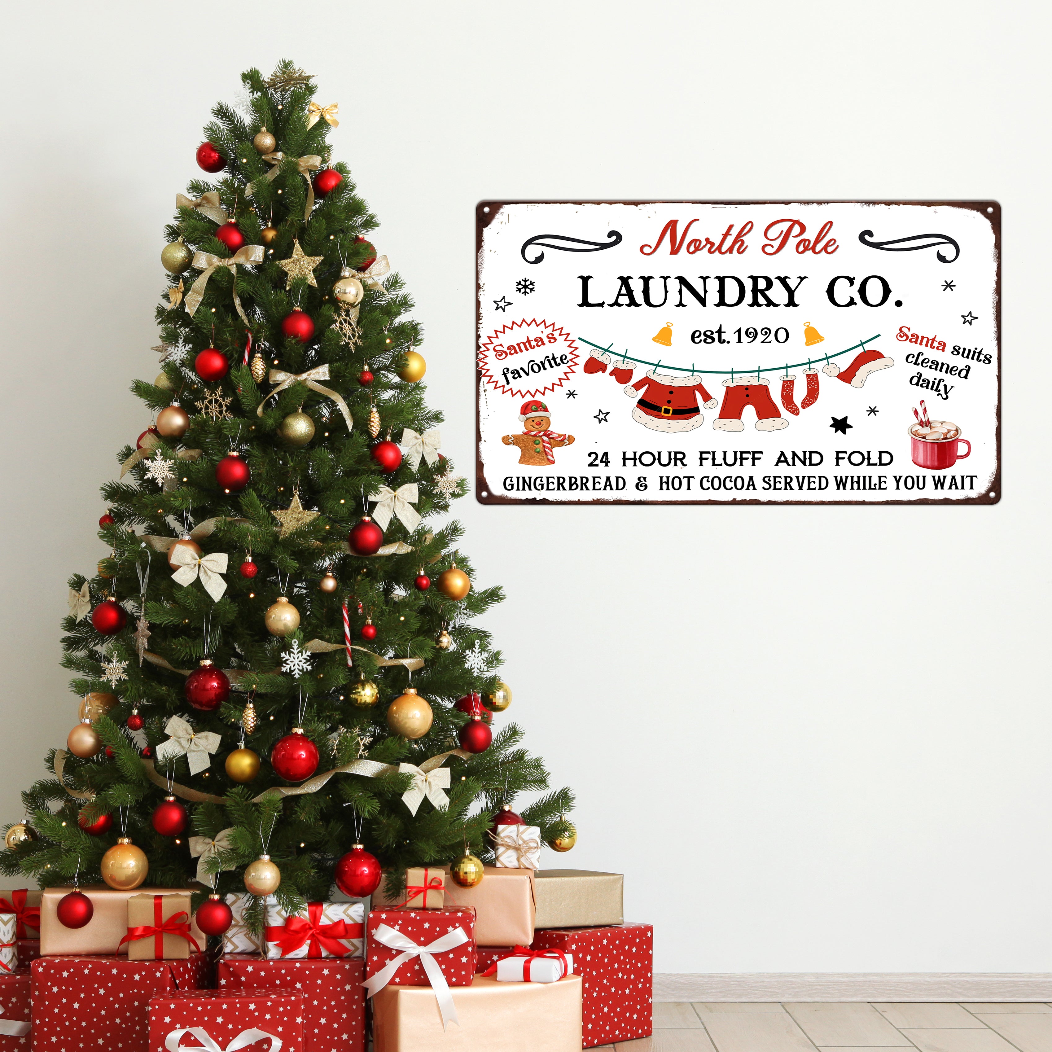 Crafted from high-quality, durable metal, this tin sign has a weathered, vintage look that complements a variety of interior styles. Its lightweight design makes it easy to hang, and the pre-drilled holes ensure a hassle-free display on any wall or door. Whether you’re decorating your own laundry space or looking for a unique holiday gift, this Christmas metal tin sign adds a cozy and festive flair.