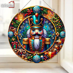 Nutcracker Christmas Round Acrylic Stained Glass-Style Suncatcher, Christmas Gift Ornament