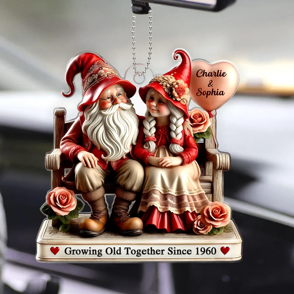 Old Gnome Couple Acrylic Ornament, Keychain For Couple, Old Couple Gift, Couple Anniversary Gift