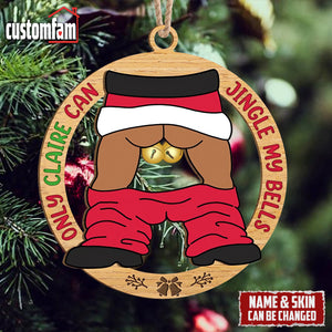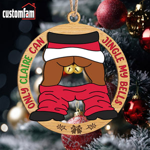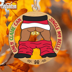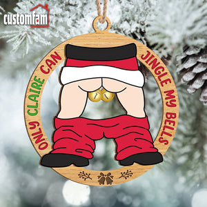 Customize this 2-layered ornament with your and your partner's names, making it a personalized and thoughtful addition to their holiday decor. The top layer features the humorous phrase, "Only ...Can Jingle My Bells " while the bottom layer adds contrast and dimension, creating a standout piece for any Christmas tree.