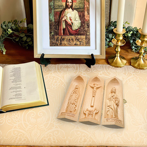 Ave Maria & St.Joseph Openable Wood Cylinder Sculpture Of Jesus Christ, Christian Merchandise, Christian Presents