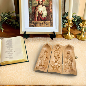 Mary, Jesus, and St. Joseph Openable Wooden Cylinder Sculpture Of Jesus Christ, Christian Merchandise, Christian Gifts