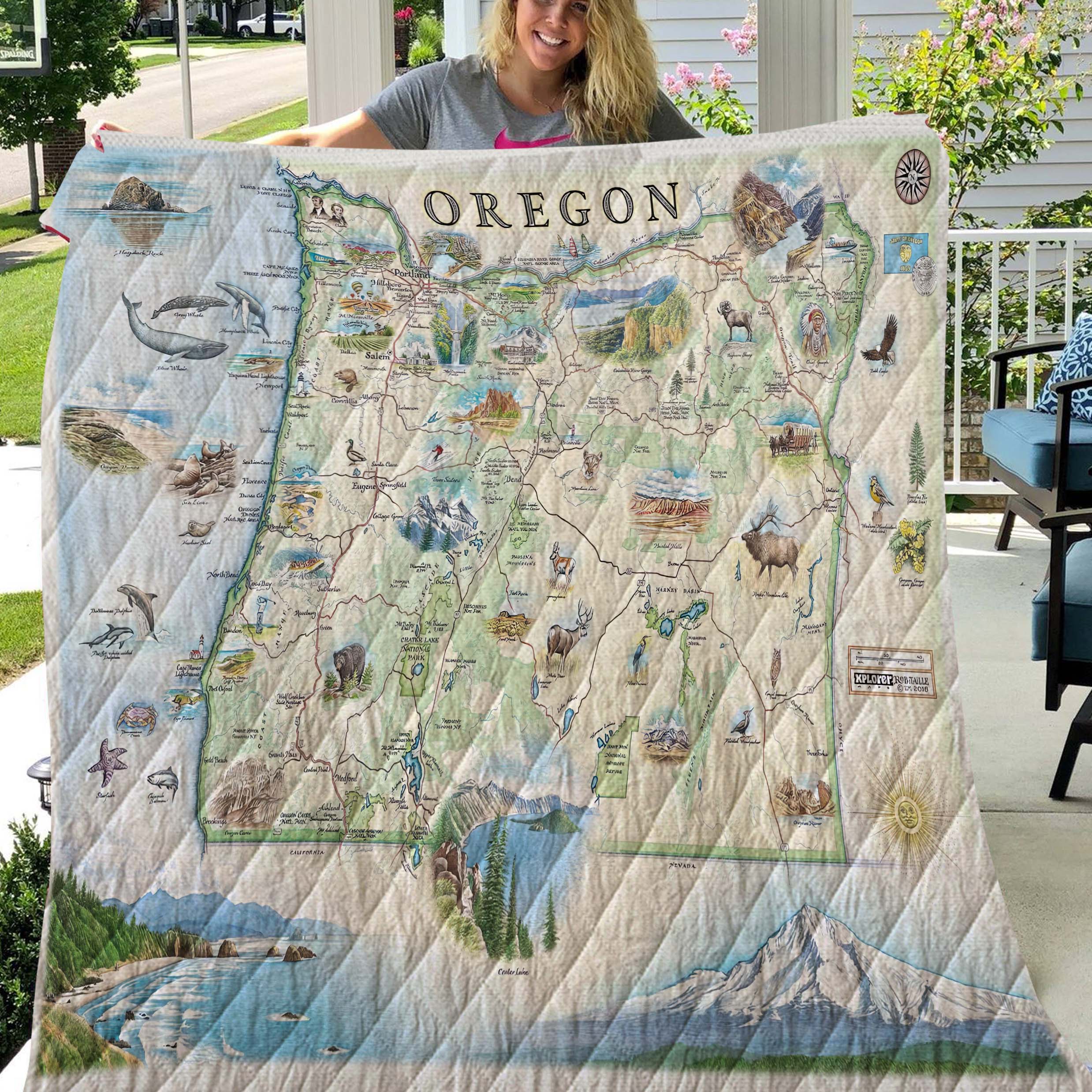 Oregon State Park Map Blanket, Gift For Travelers, Outdoor Gift