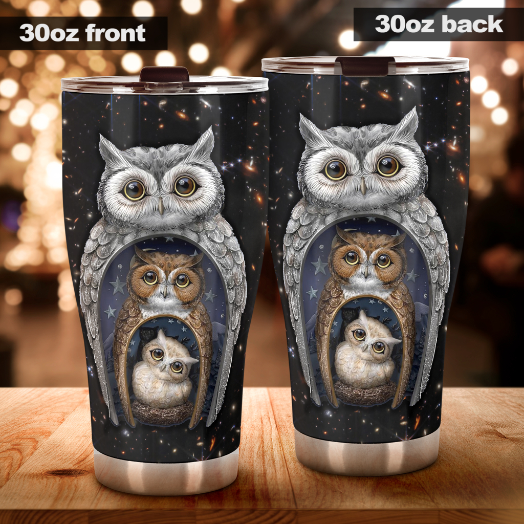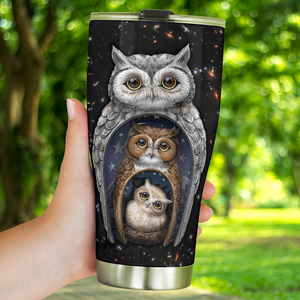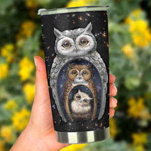 Owl Family Large Tumbler, Cute Tumblers, Stainless Steel Tumbler