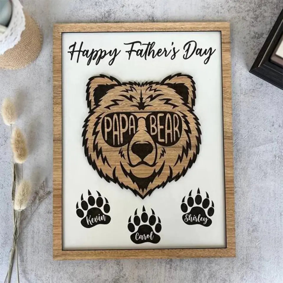 Papa Bear Personalized 2 Layered Wooden Sign, Father's Day Gift