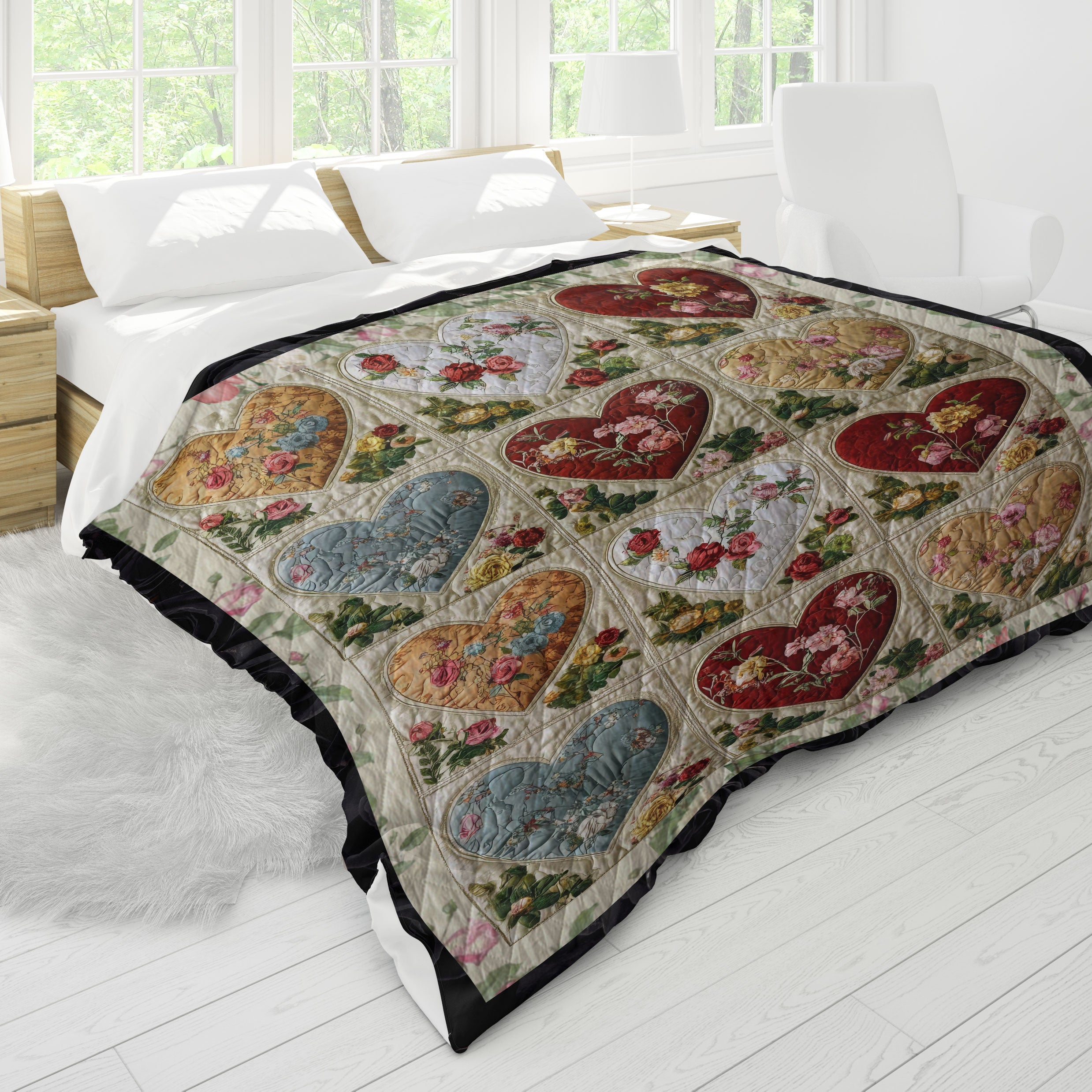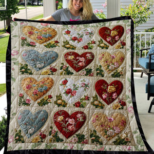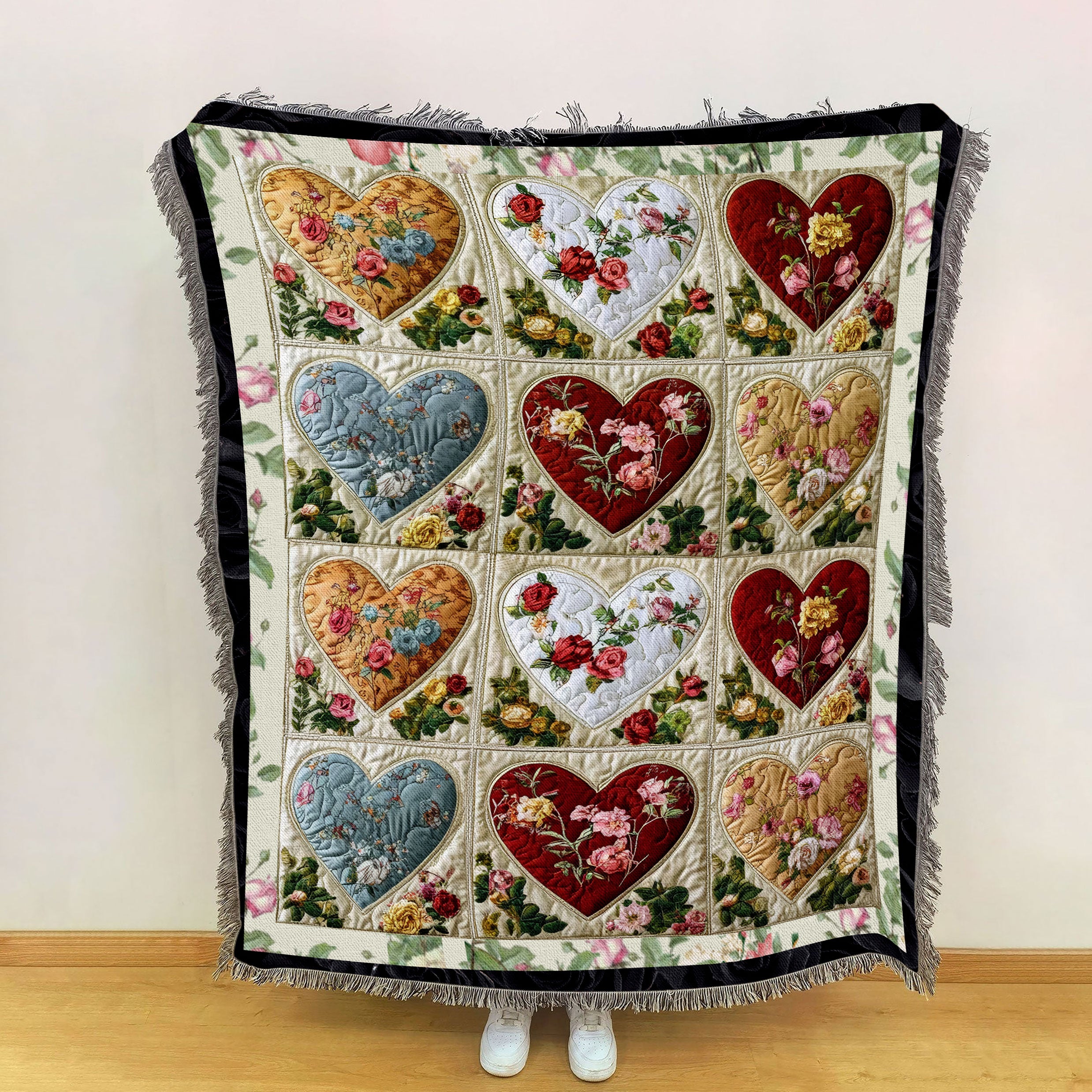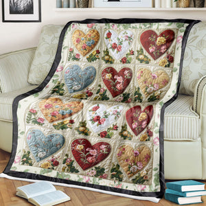 Patchwork Hearts Floral Blanket, Mom Blanket, Mother's Day Gifts
