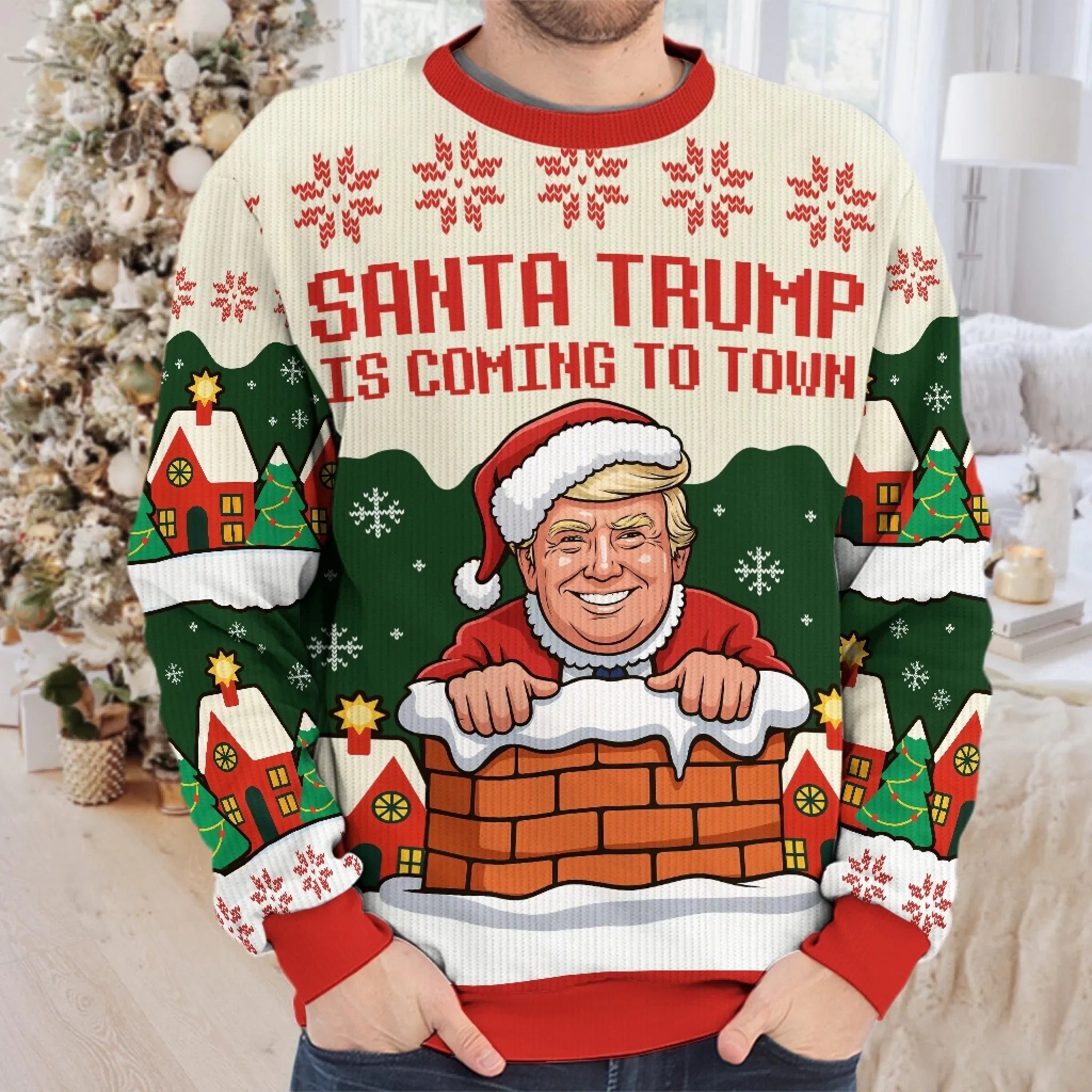 Funny Ugly Christmas Sweatshirt, Santa Trump Christmas Sweater, Gift for Christmas