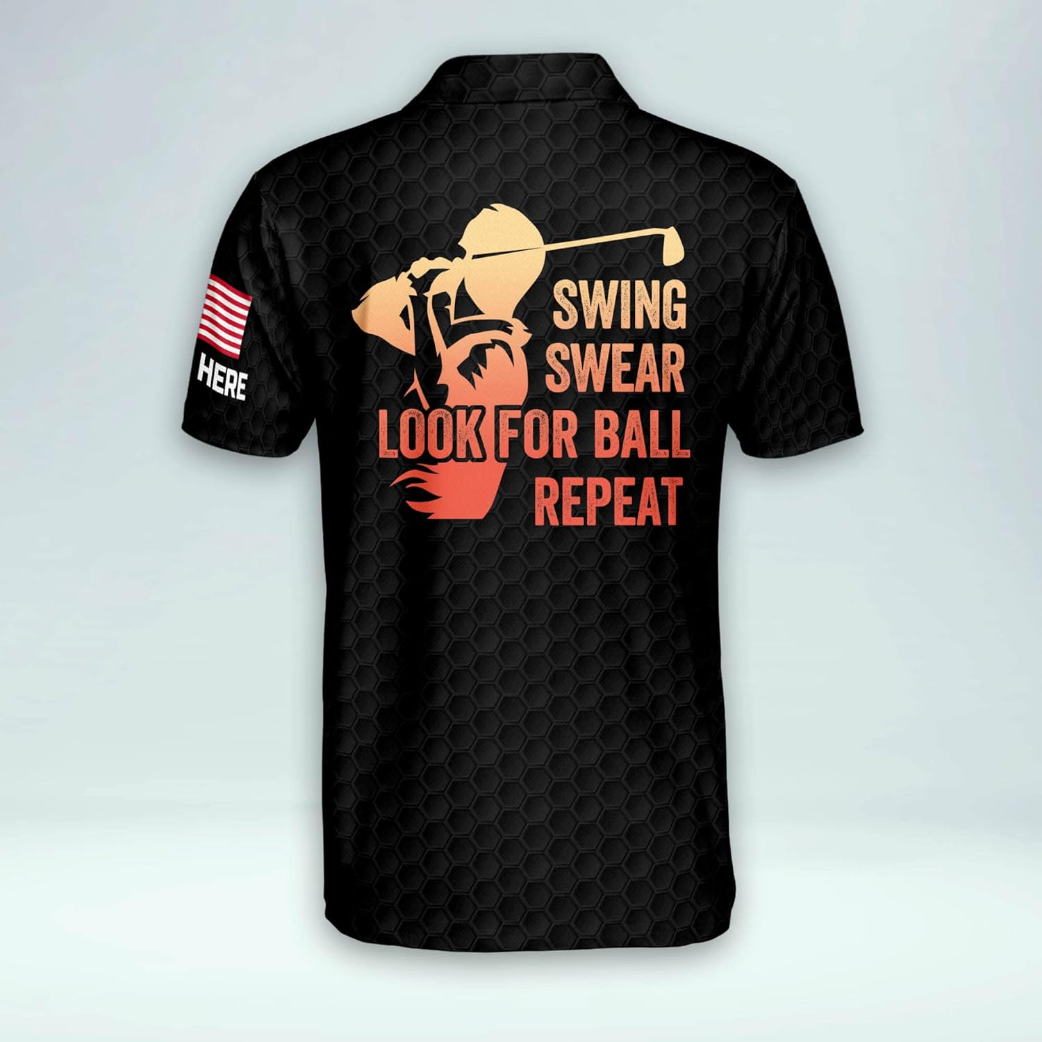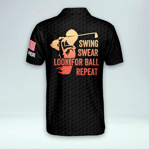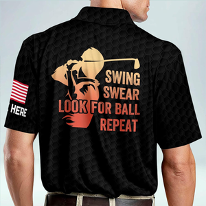 Swing Swear Look For Ball Repeat American Flag Custom Name Golf Polo Shirts, Golf Gift For Men, Golfing Apparel
