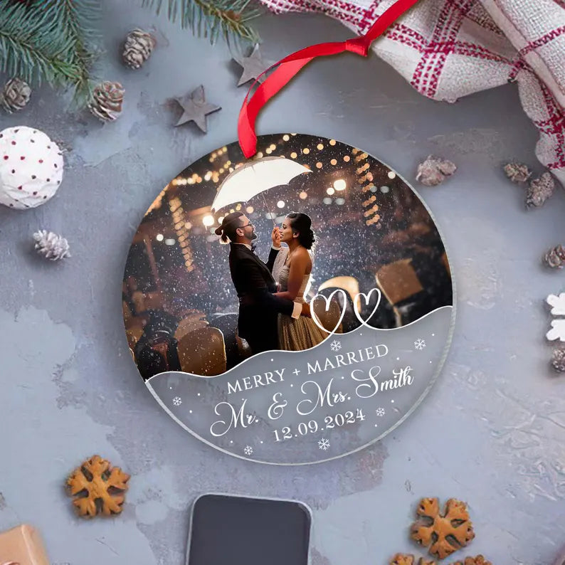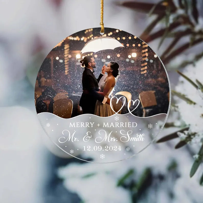 Personalised Merry & Married Christmas Ornament, Gift For Married Couple