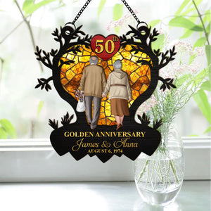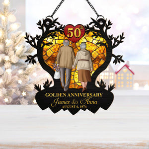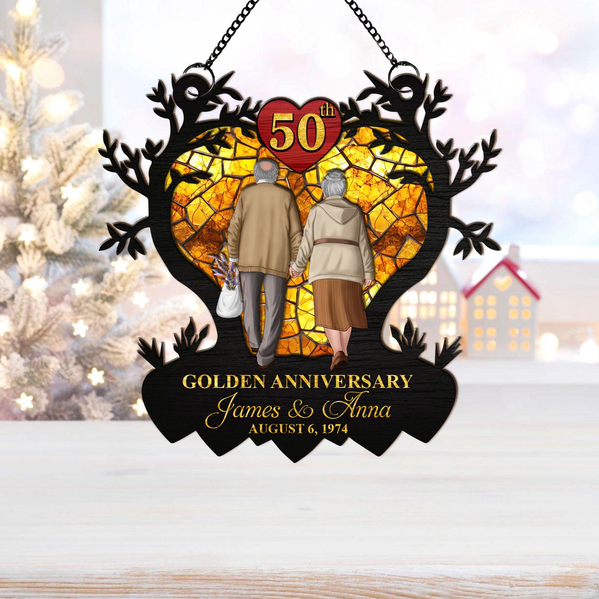 Personalized 50th Wedding Anniversary Window Hanging Ornament Suncatcher, Anniversary Golden Wedding Gift