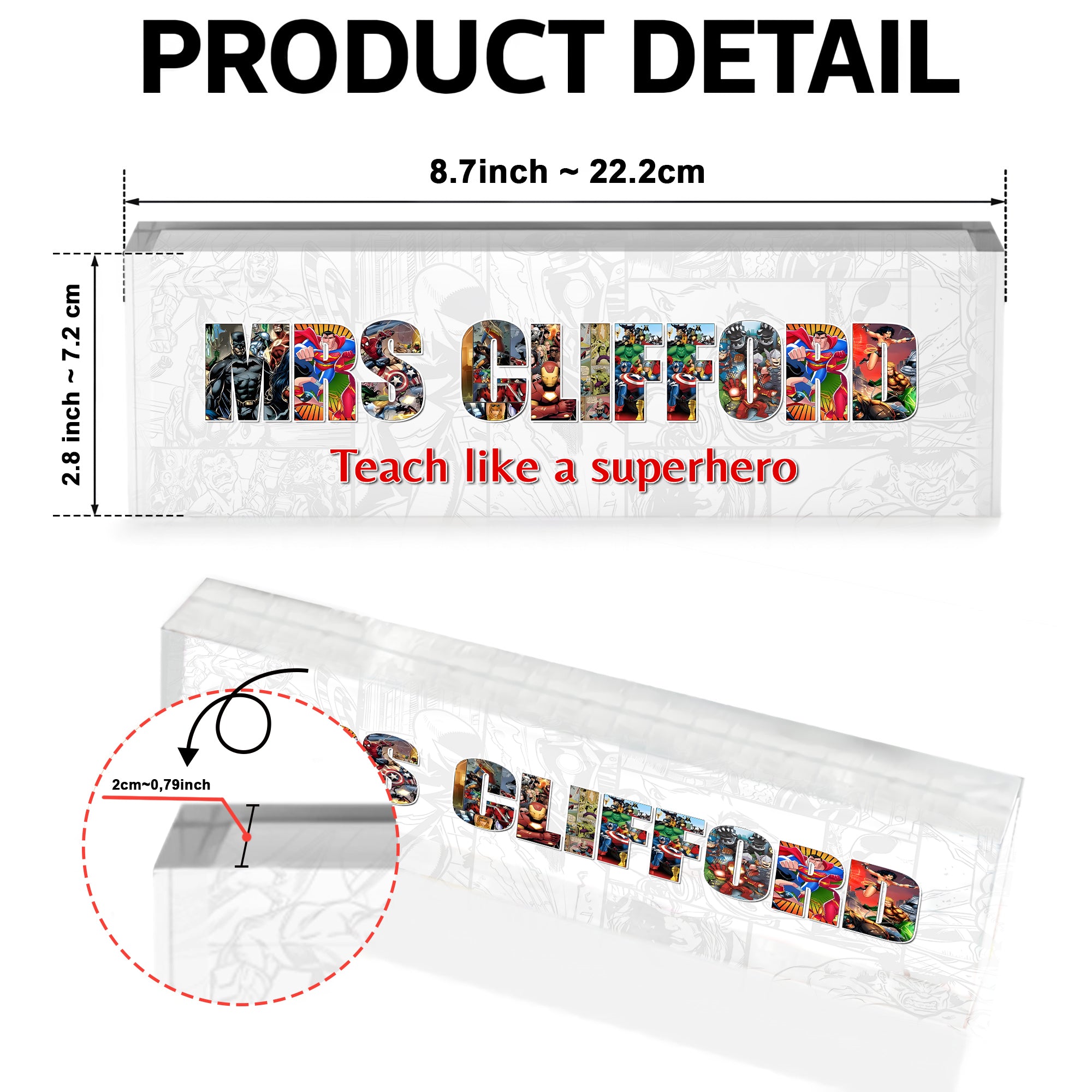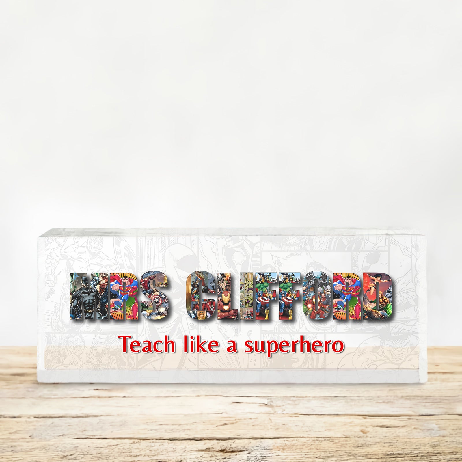 Celebrate your favorite teacher with a gift that combines inspiration and personalization with our Personalized Alphabet Superhero Acrylic Teacher Sign. Perfect for Teacher Appreciation Day, back-to-school gifts, or just to show your gratitude, this unique sign adds a touch of superhero charm to any classroom.