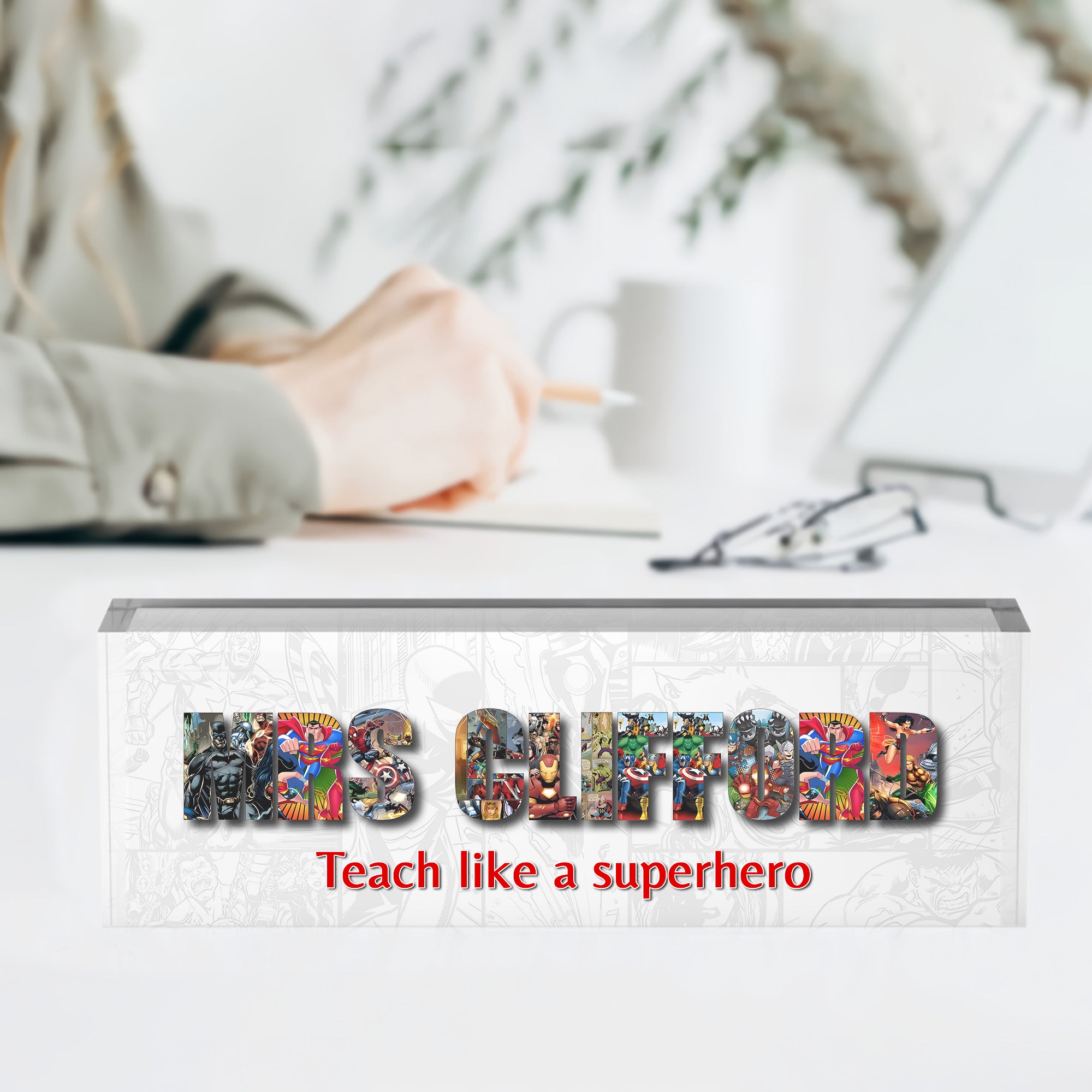 Personalized Alphabet Superhero Acrylic Teacher Sign, Teacher Appreciation Gifts, Back To School Gift
