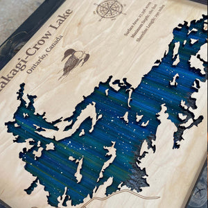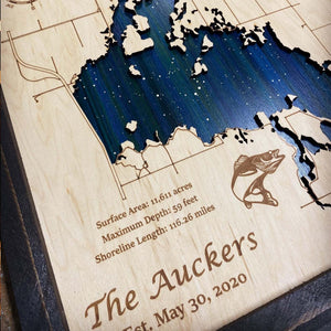 Personalized Any Lake Wood Art, Starry Night Painting 3D Lake Map, Lake Wall Art
