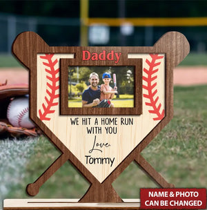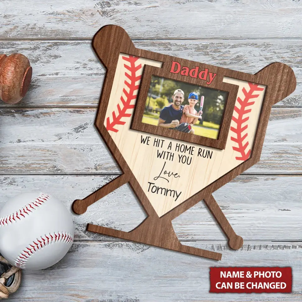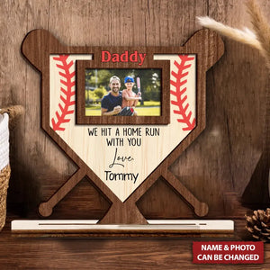 We Hit A Home Run With You Personalized Baseball Dad 2 Layered Wooden Sign, Gifts For Dad