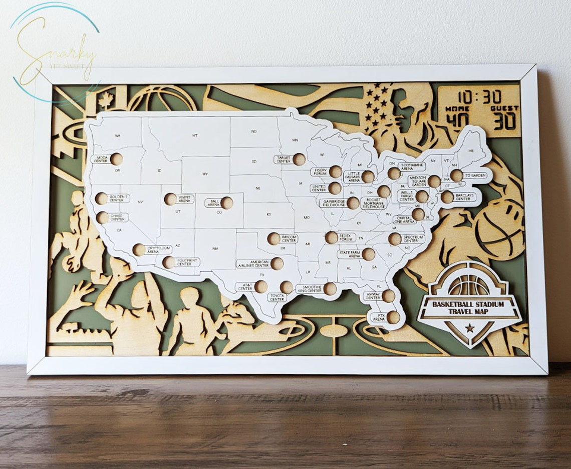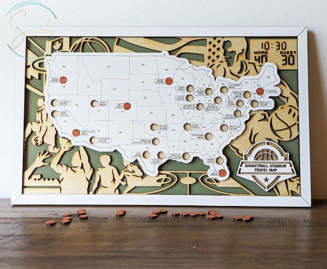 Personalized Basketball Map With Pin, Map Of Basketball Stadiums, Gift For Basketball Player, Basketball Stadiums Tracker