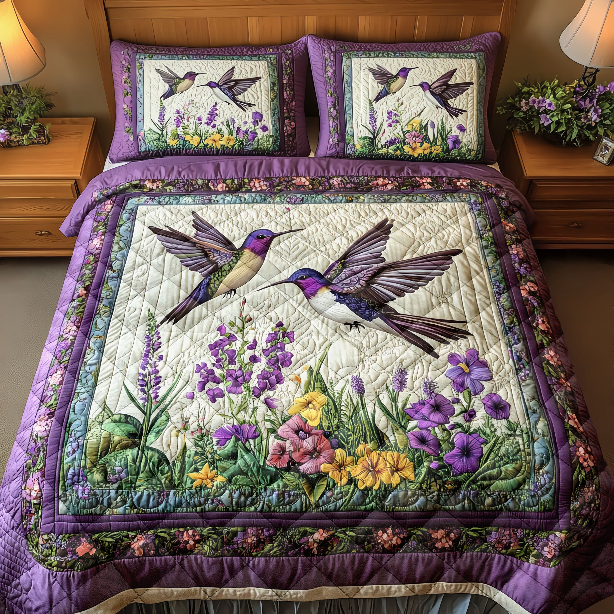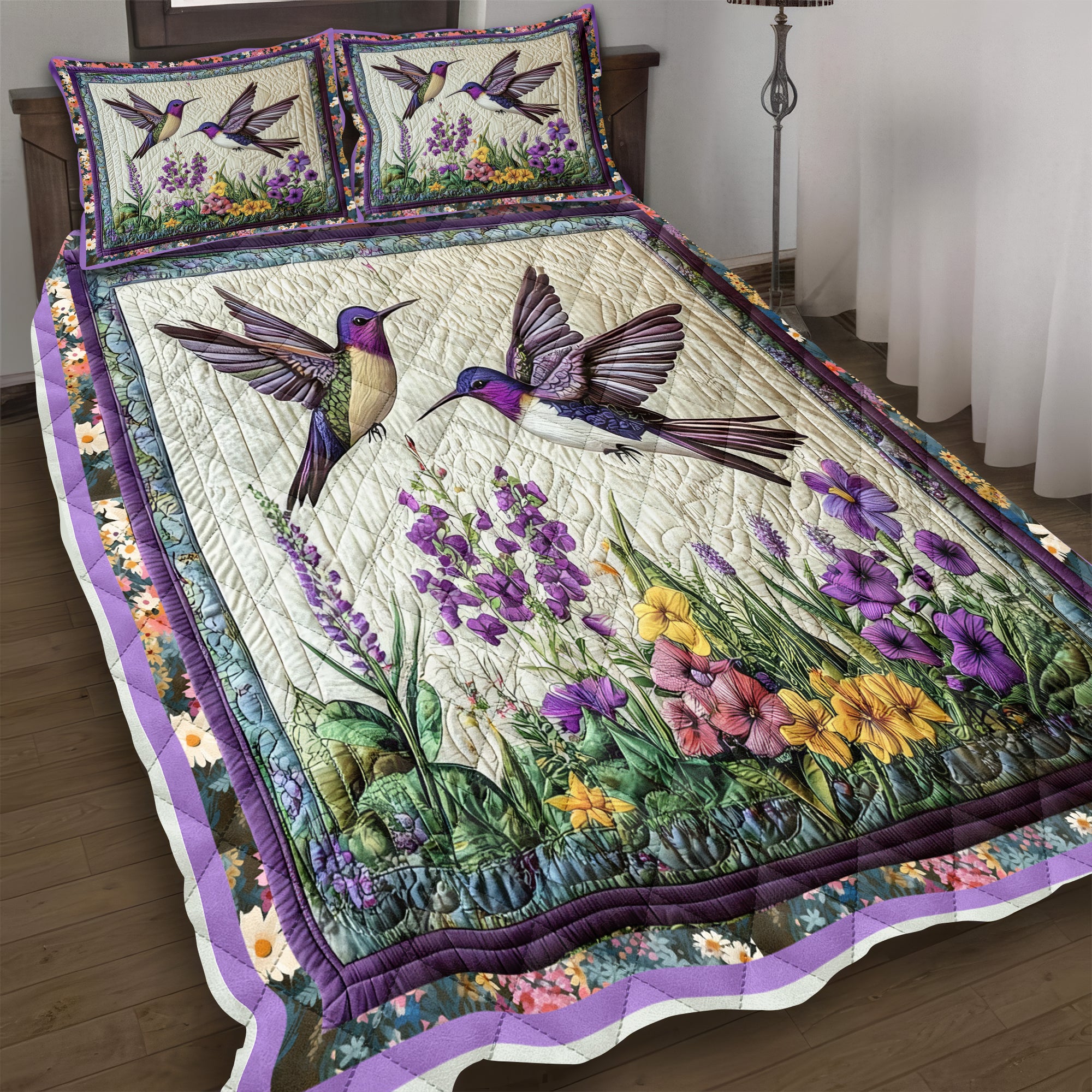 Bird Flower Couple Quilt Bed Sets, Couple Bedding Set, Couple Valentine Gift