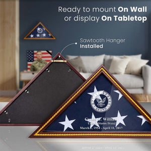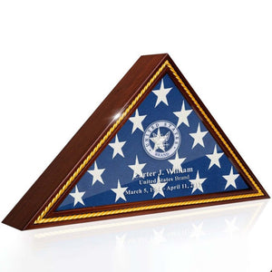 Personalized Military Burial and Presentation Flags, Wooden Flag Holder Veteran Memorial Case