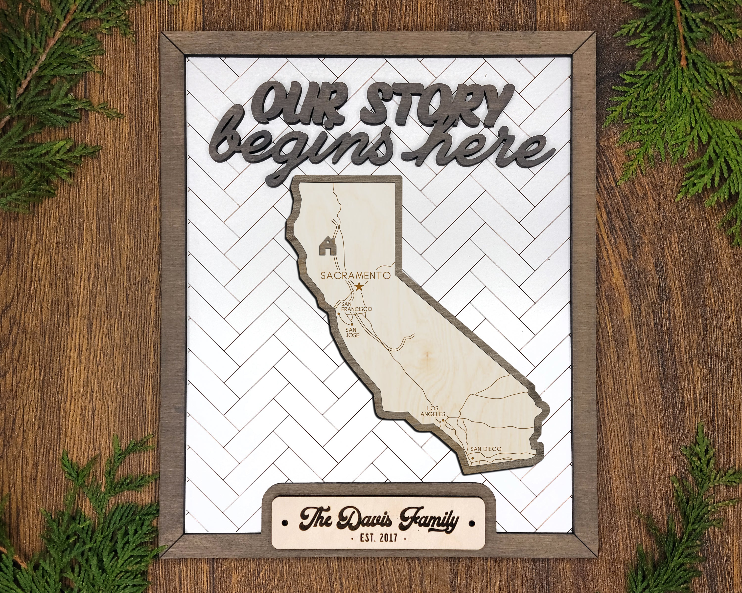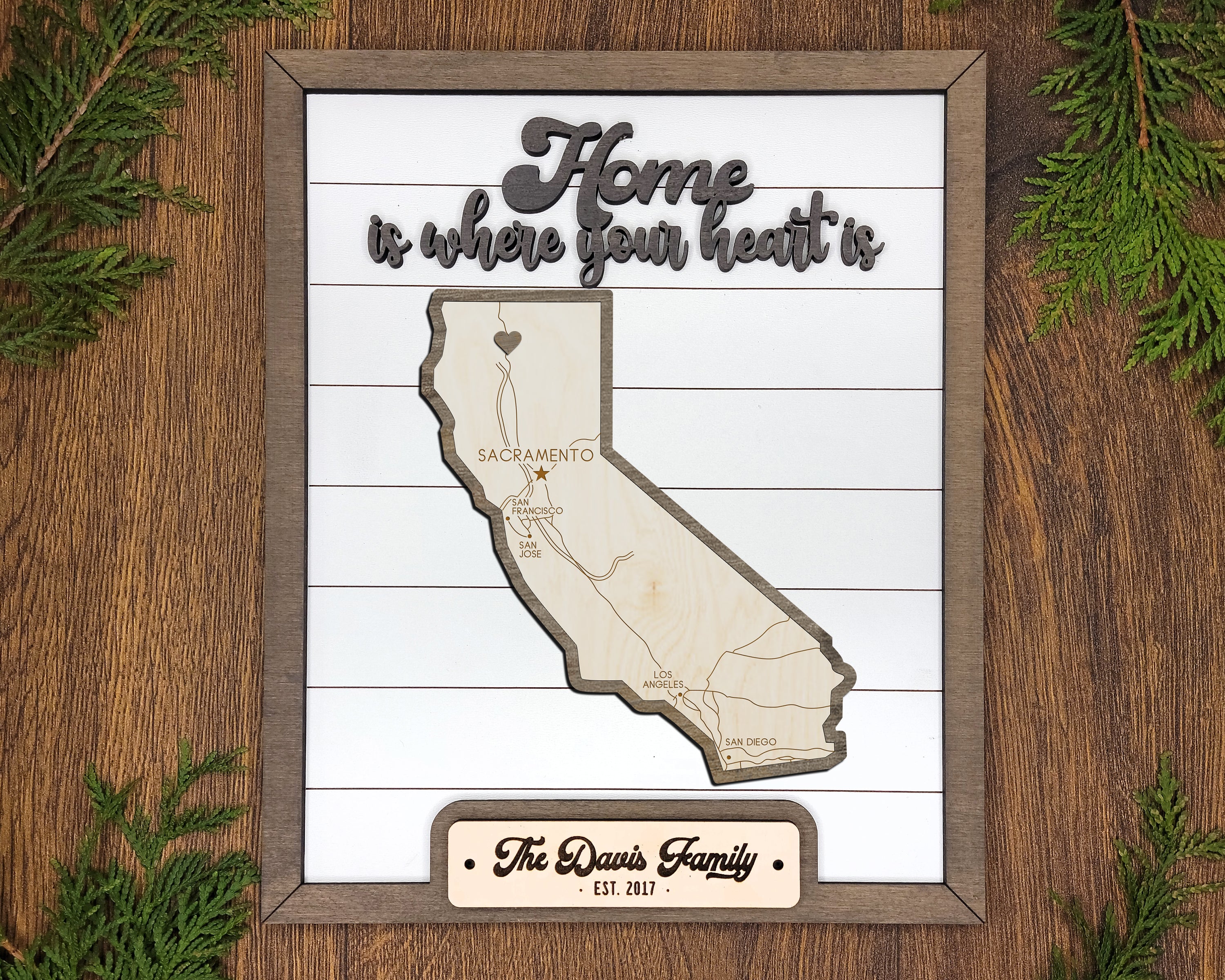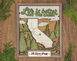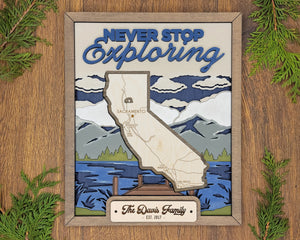 Personalized California States Wood Frame, 50 States 2 Layers Wood Plaque, Gift For Nature Lovers