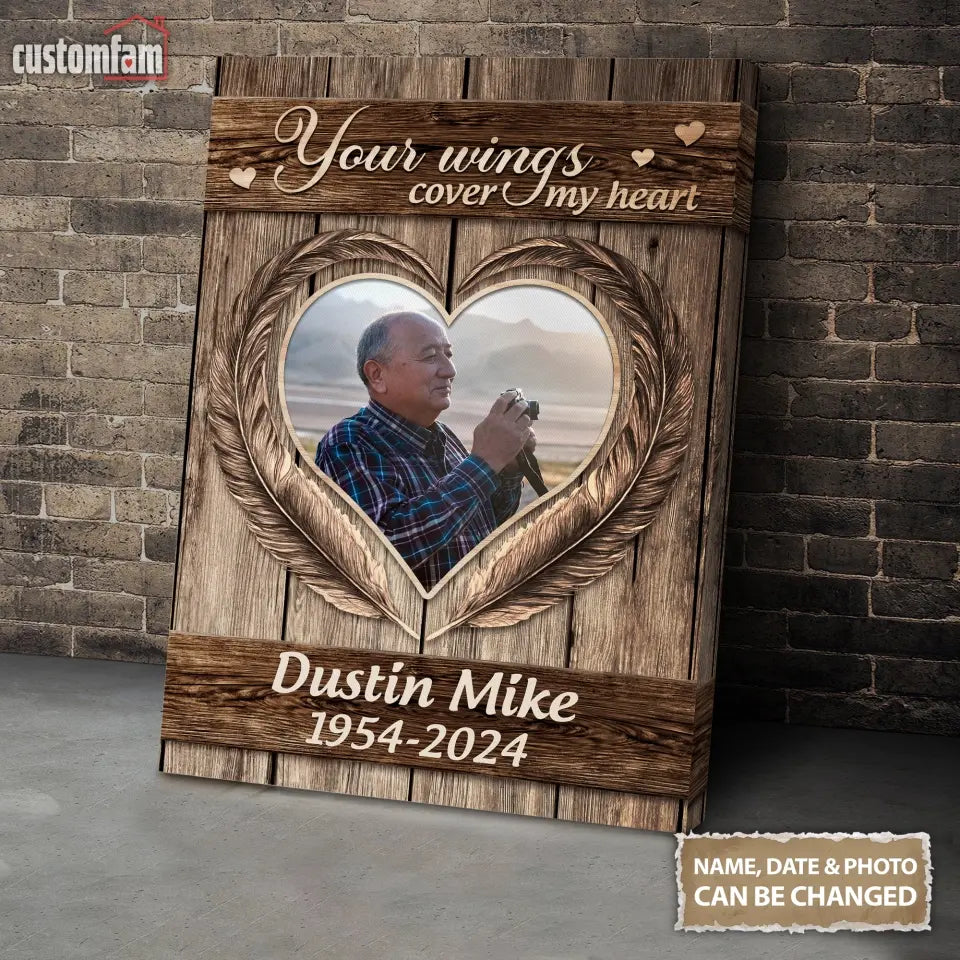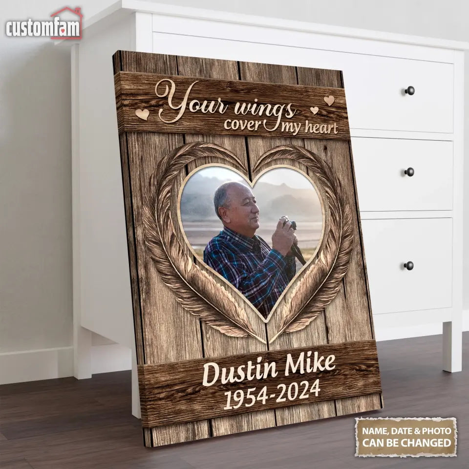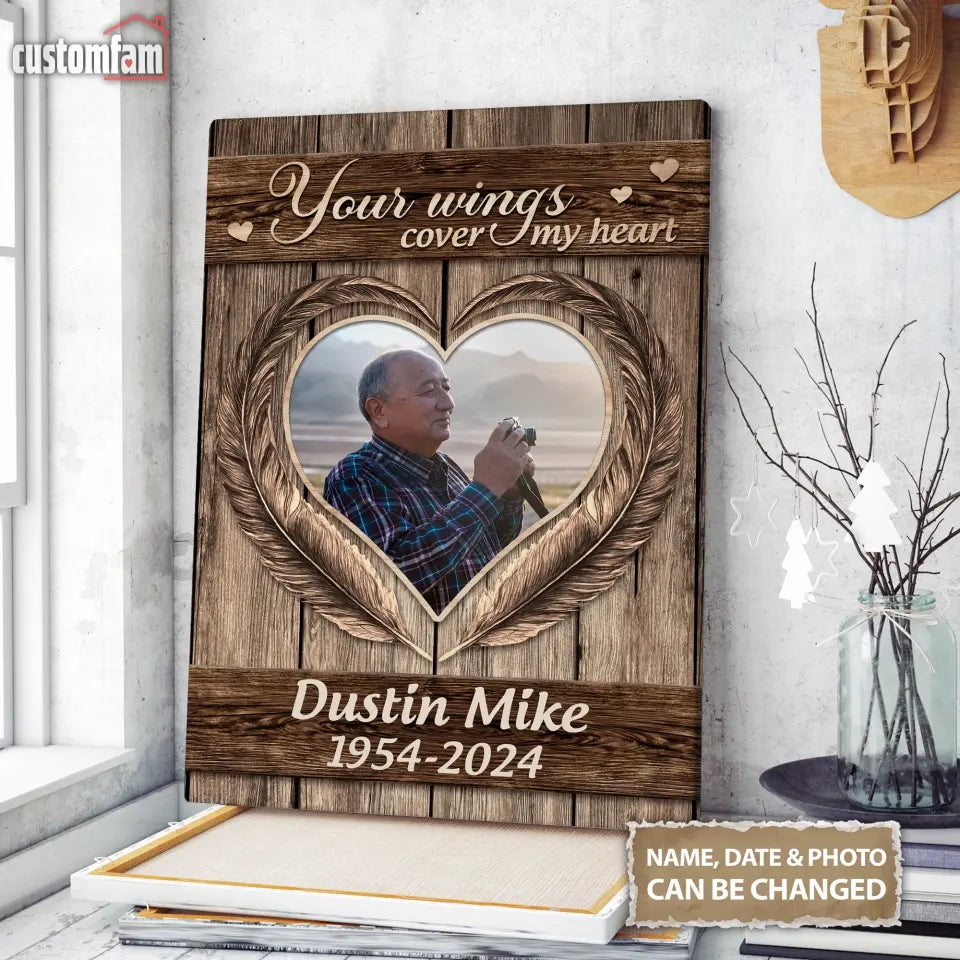 Dad Your Wings Cover My Heart Memorial Canvas