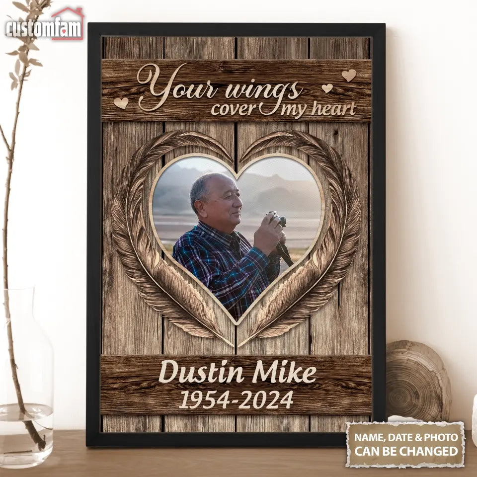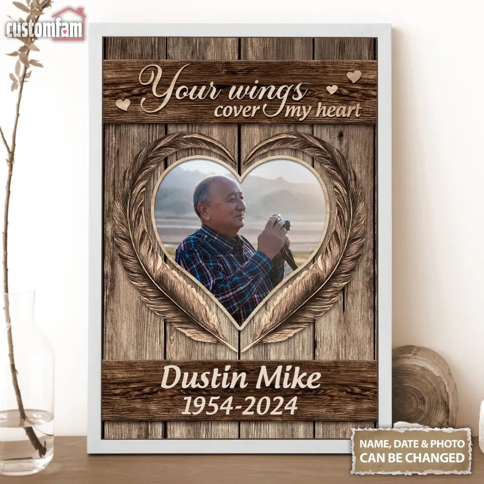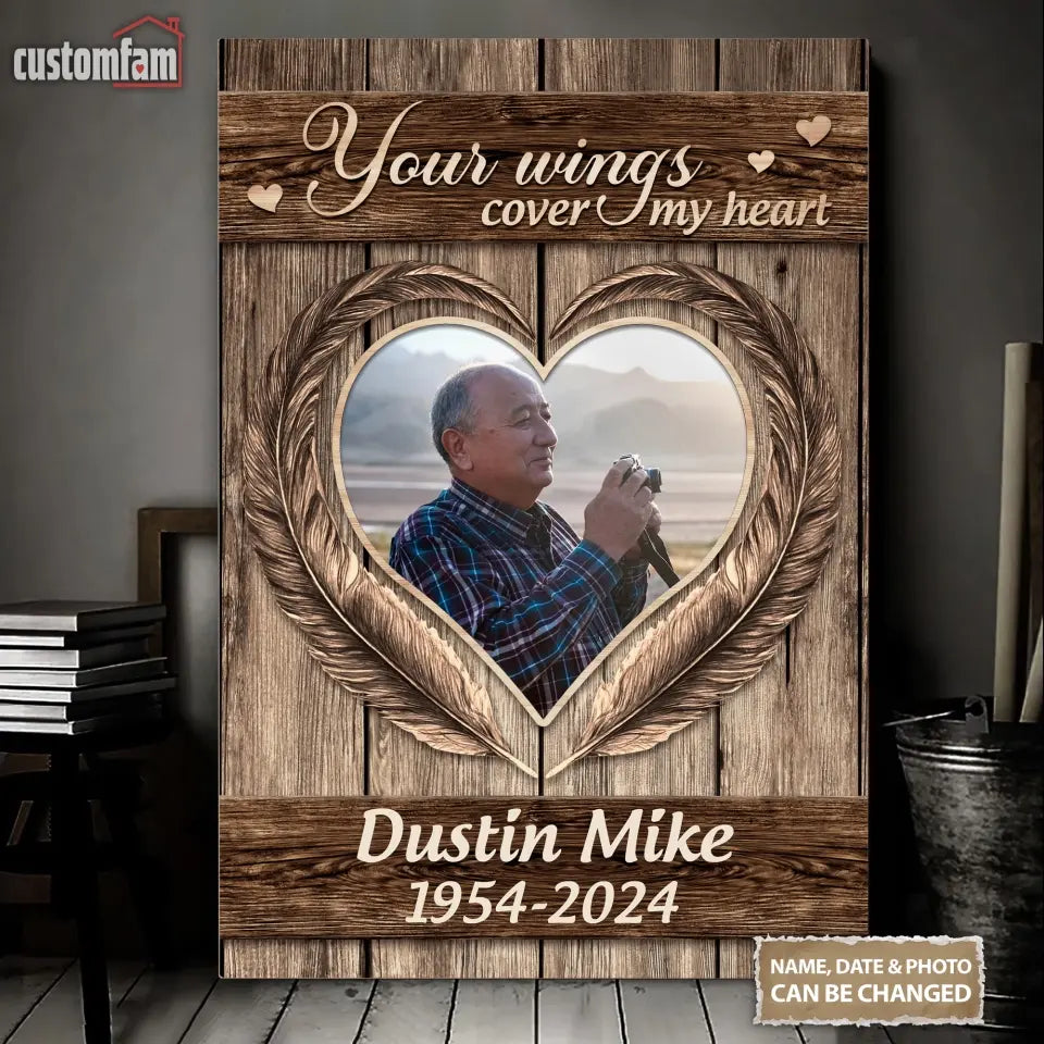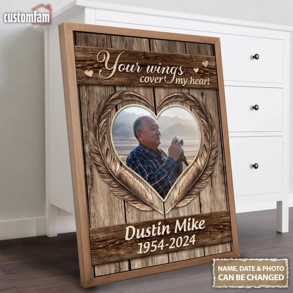 Dad Your Wings Cover My Heart Memorial Canvas