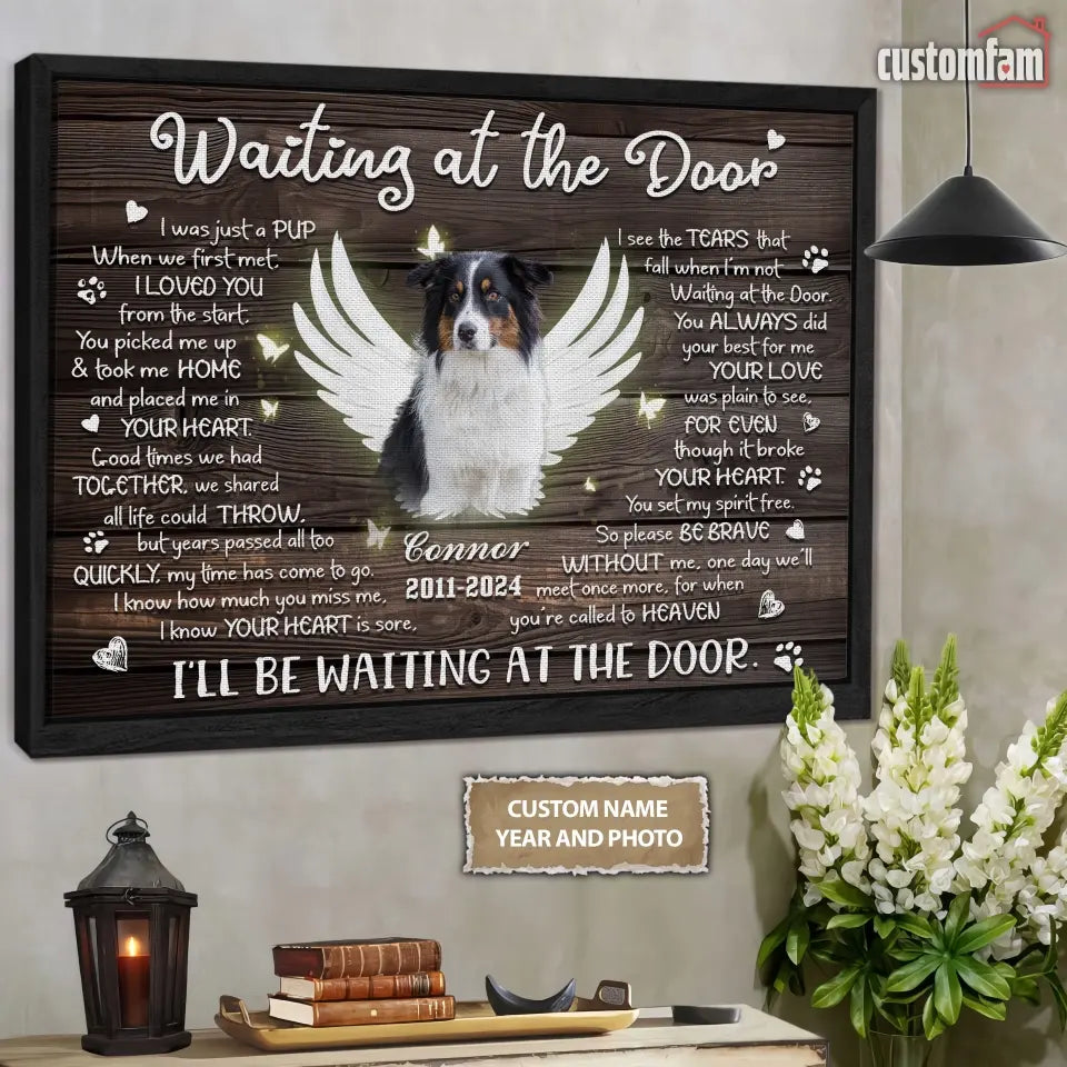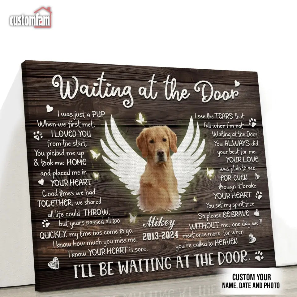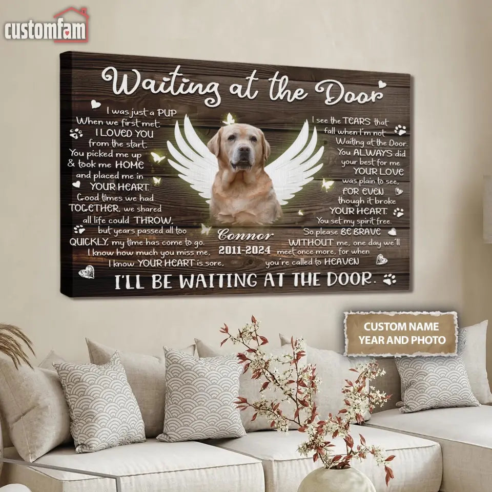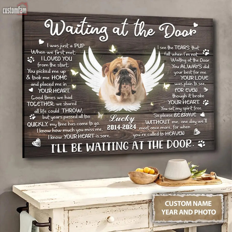 Personalized Photo Canvas, Memorial Gifts For Dog Lovers, Dog Loss Gift, Waiting At The Door Canvas