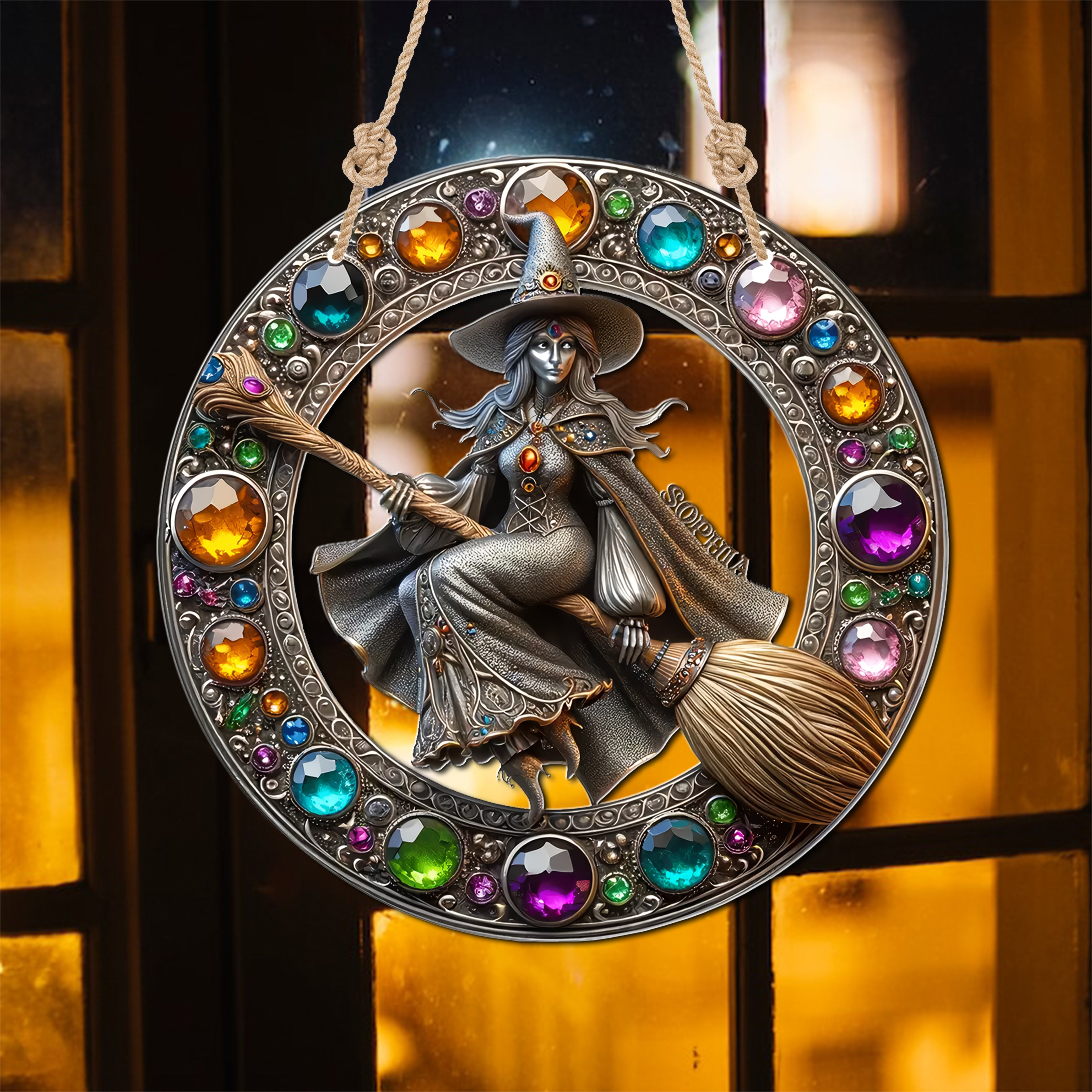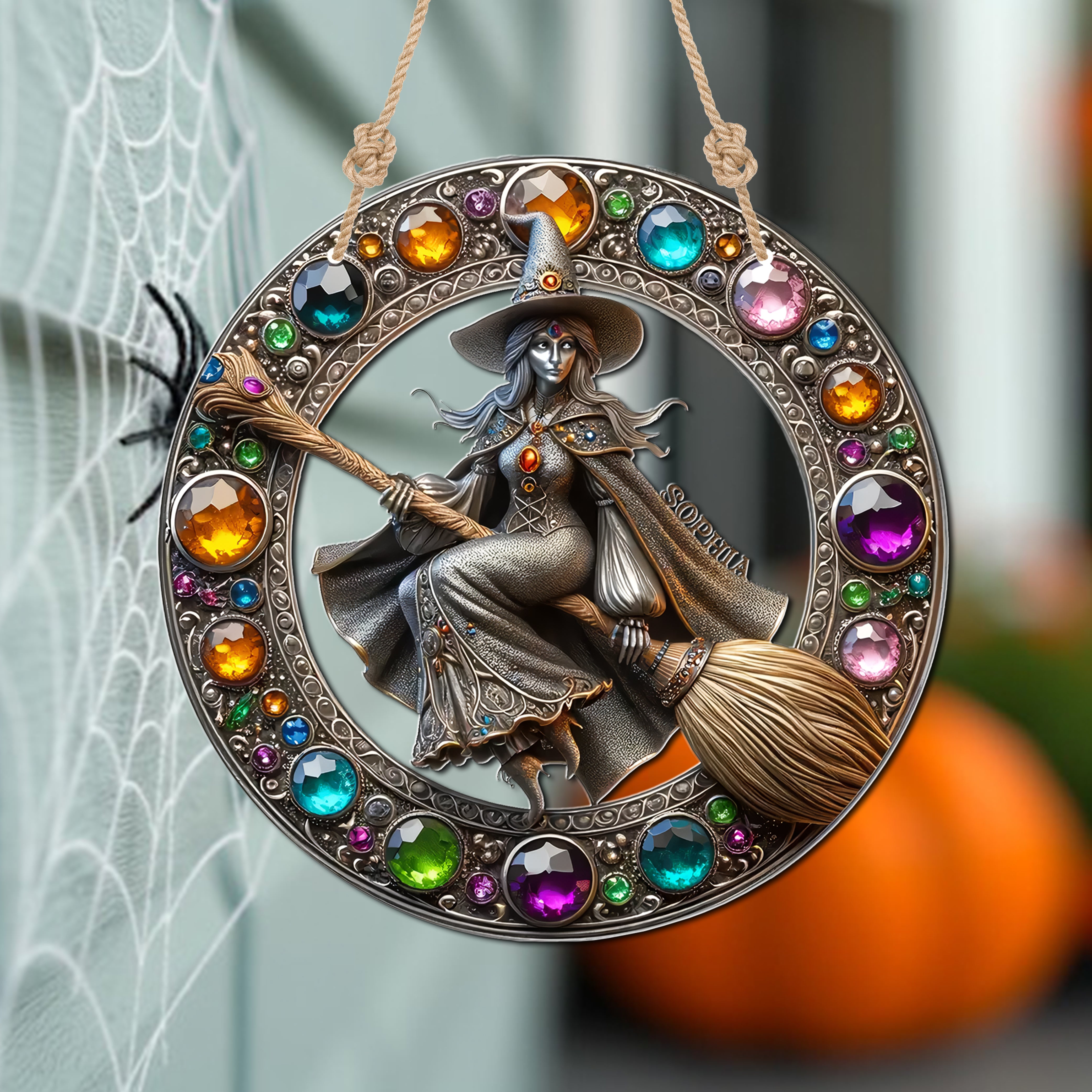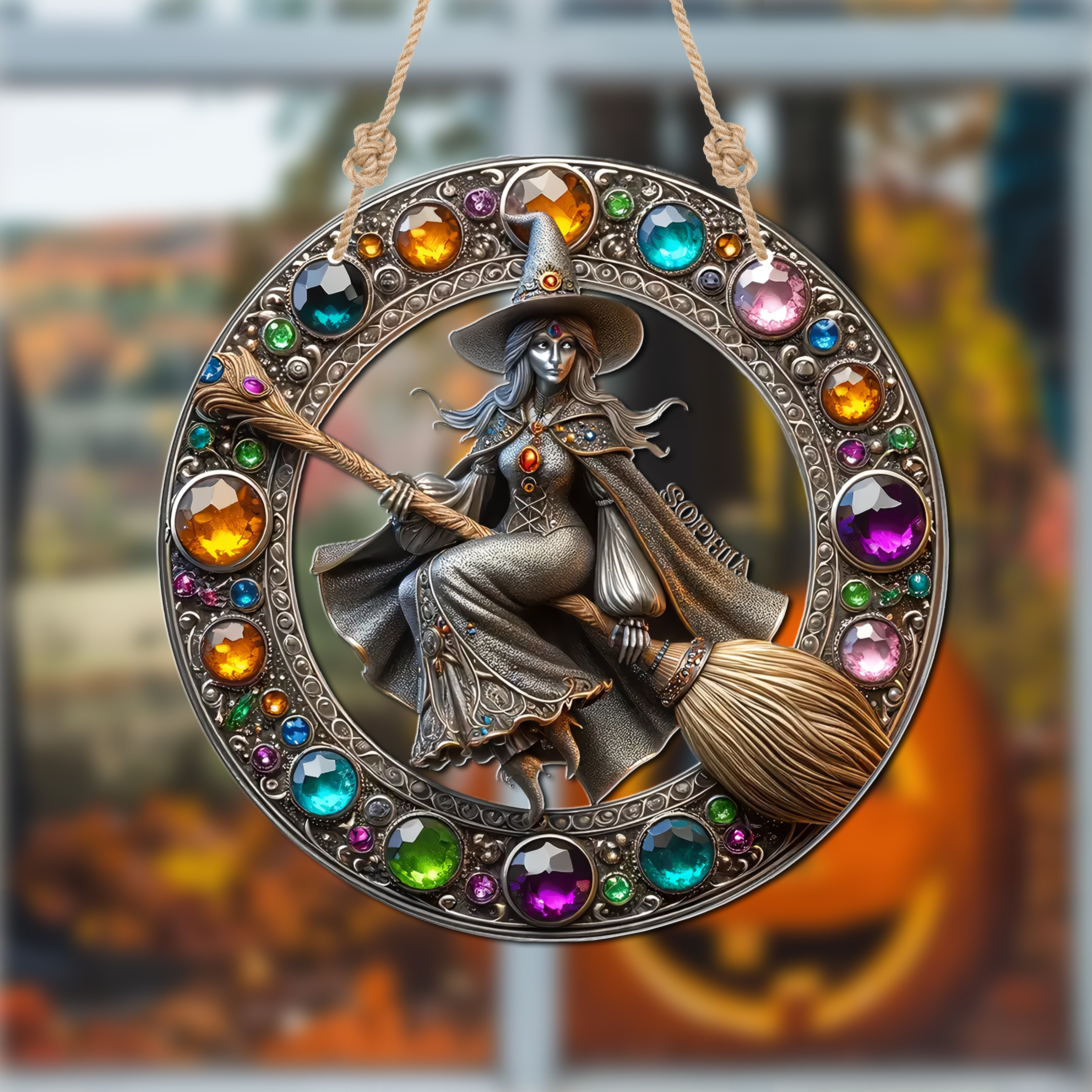 Personalized Classic Witch Suncatcher, Baroque Halloween Decor