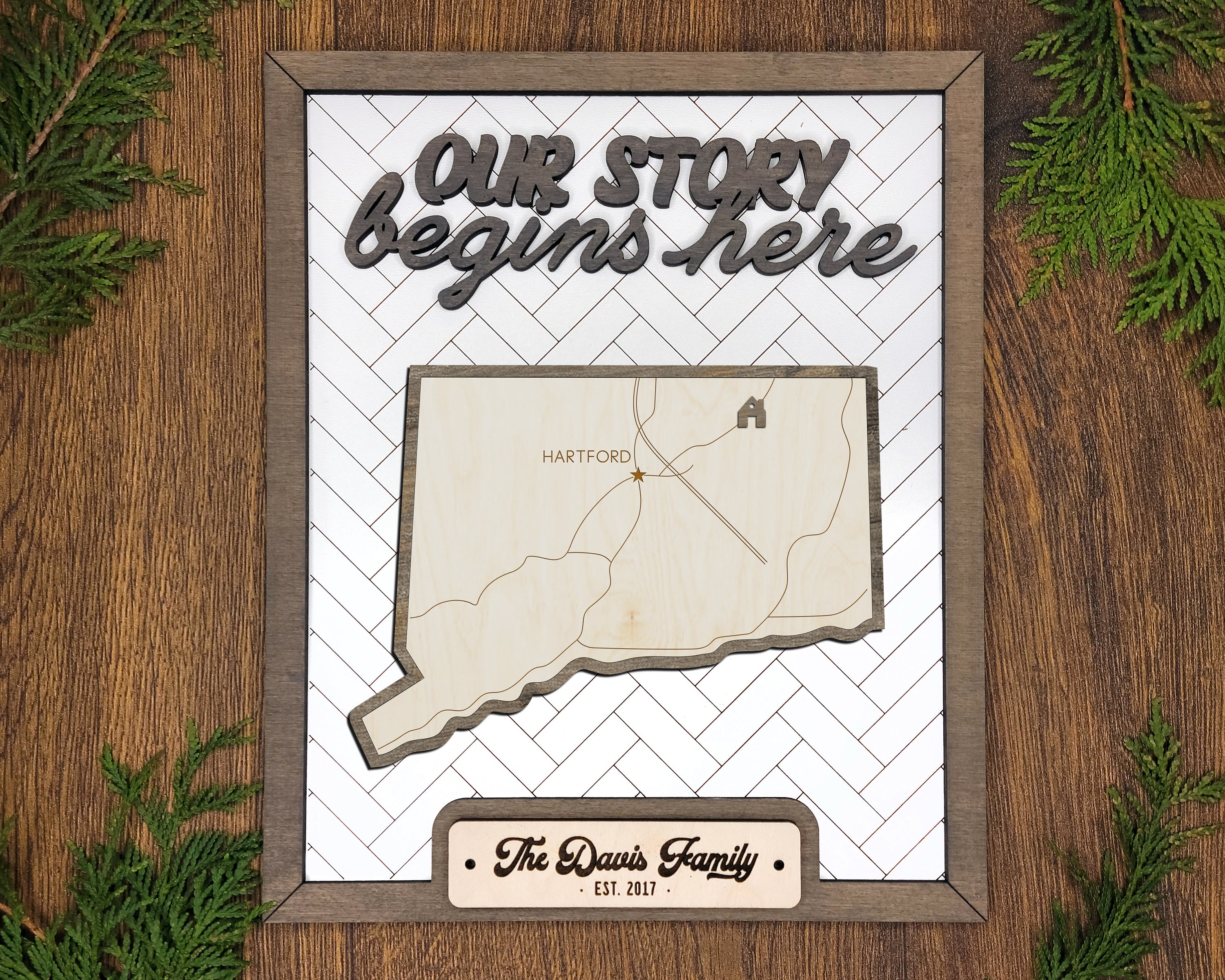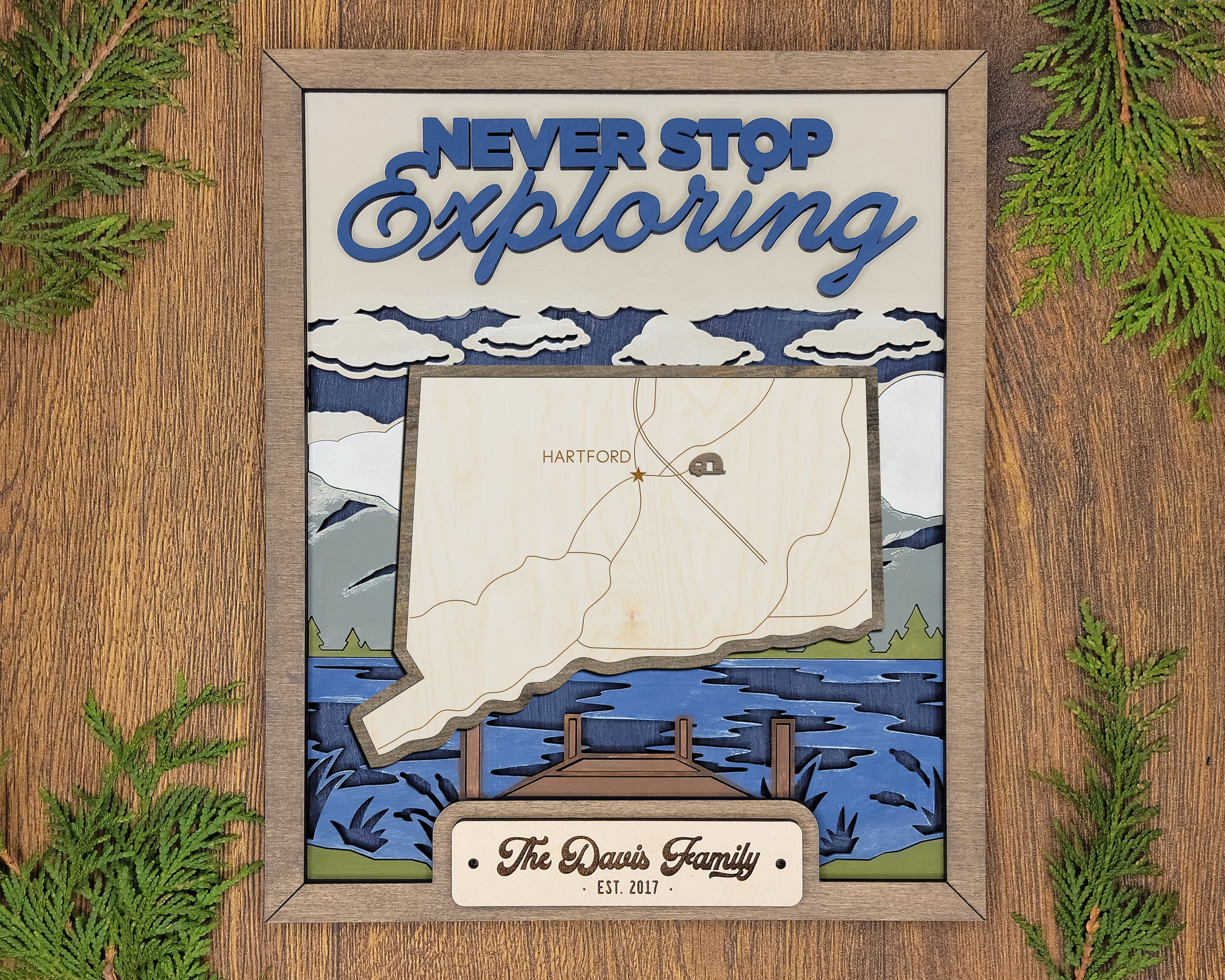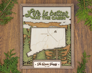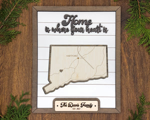 Personalized Connecticut States Wood Frame, 50 States 2 Layers Wood Plaque, Gift For Nature Lovers