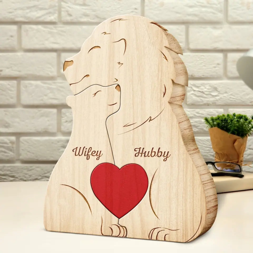 Personalized Custom Shaped Wooden Puzzle, Lions Family Puzzle Keepsake Gift, Gift For Parents, Father, Mother