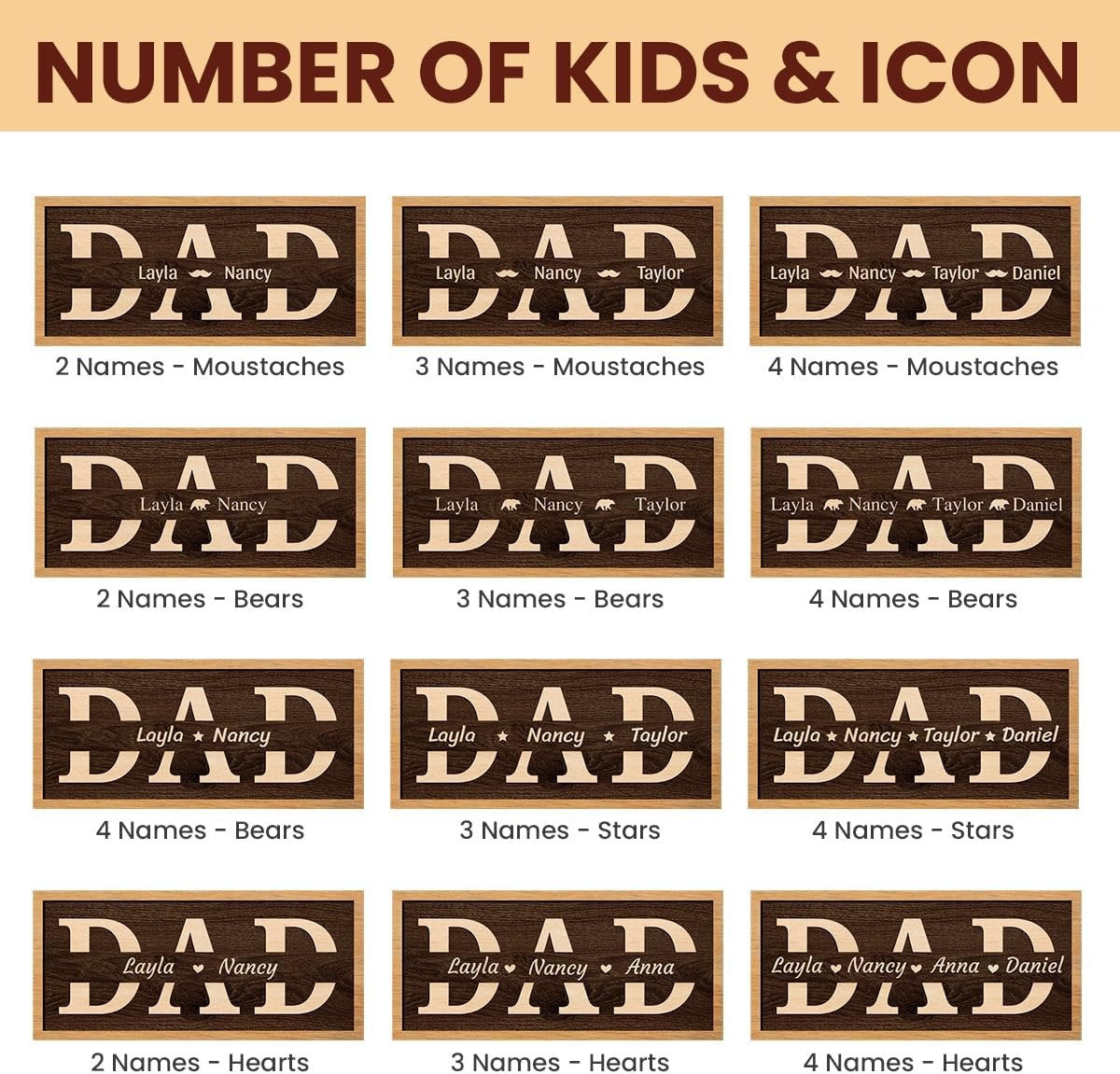 Personalized Dad Frame Wood Sign With Kids Name, Wooden Table For Home Decor